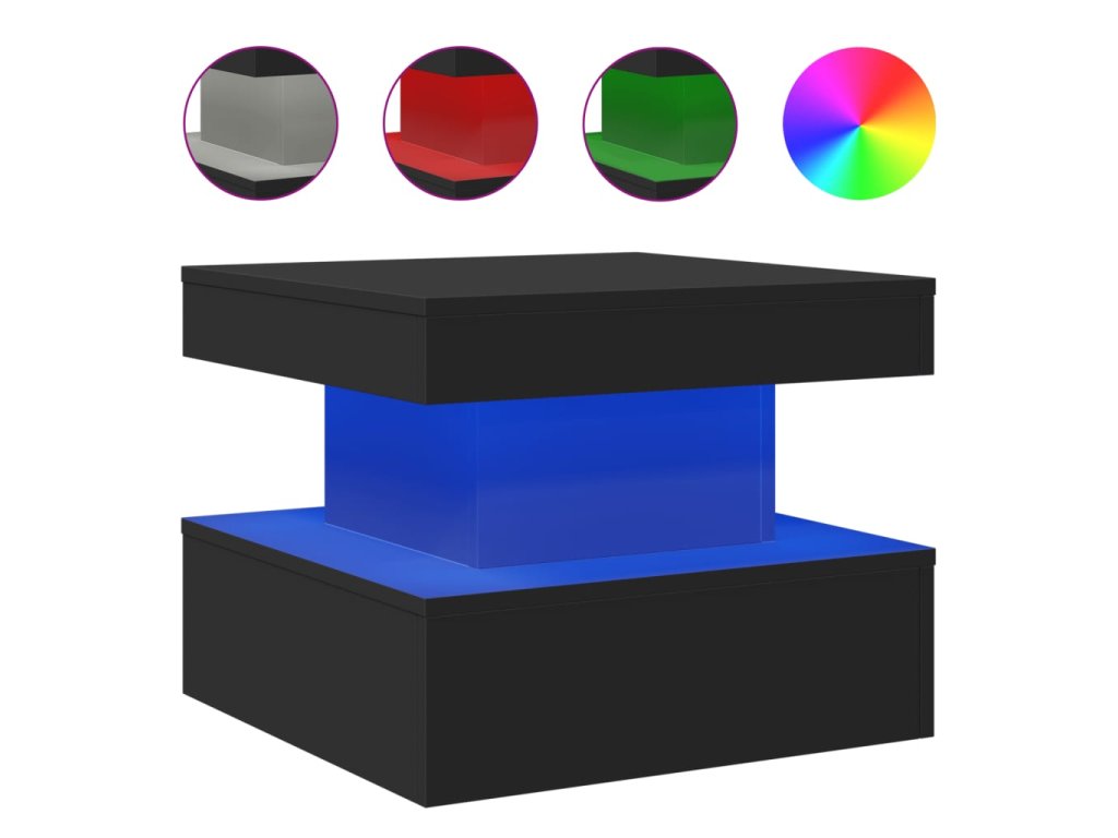 Konferenční stolek s LED osvětlením černý 50 x 50 x 40 cm 839841