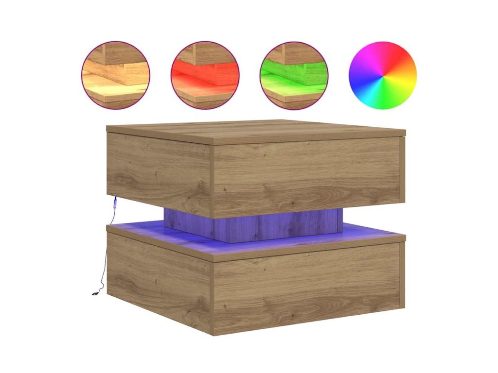 Konferenční stolek s LED osvětlením dub artisan 50 x 50 x 40 cm 857717