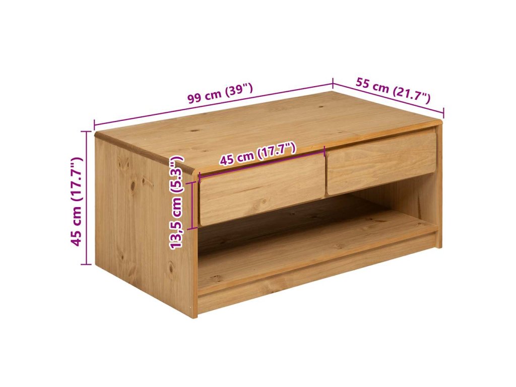 Konferenční stolek SAUDA dub 99 x 55 x 45 cm masivní borovice 377598