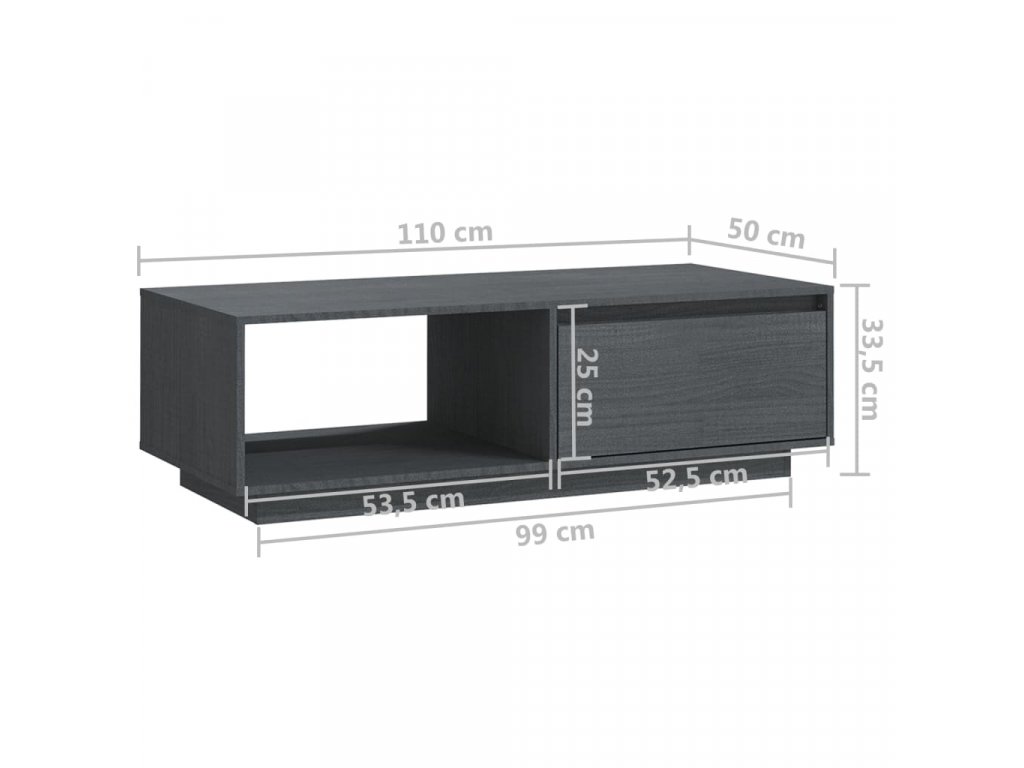 Konferenční stolek šedý 110 x 50 x 33,5 cm masivní borovice 809884