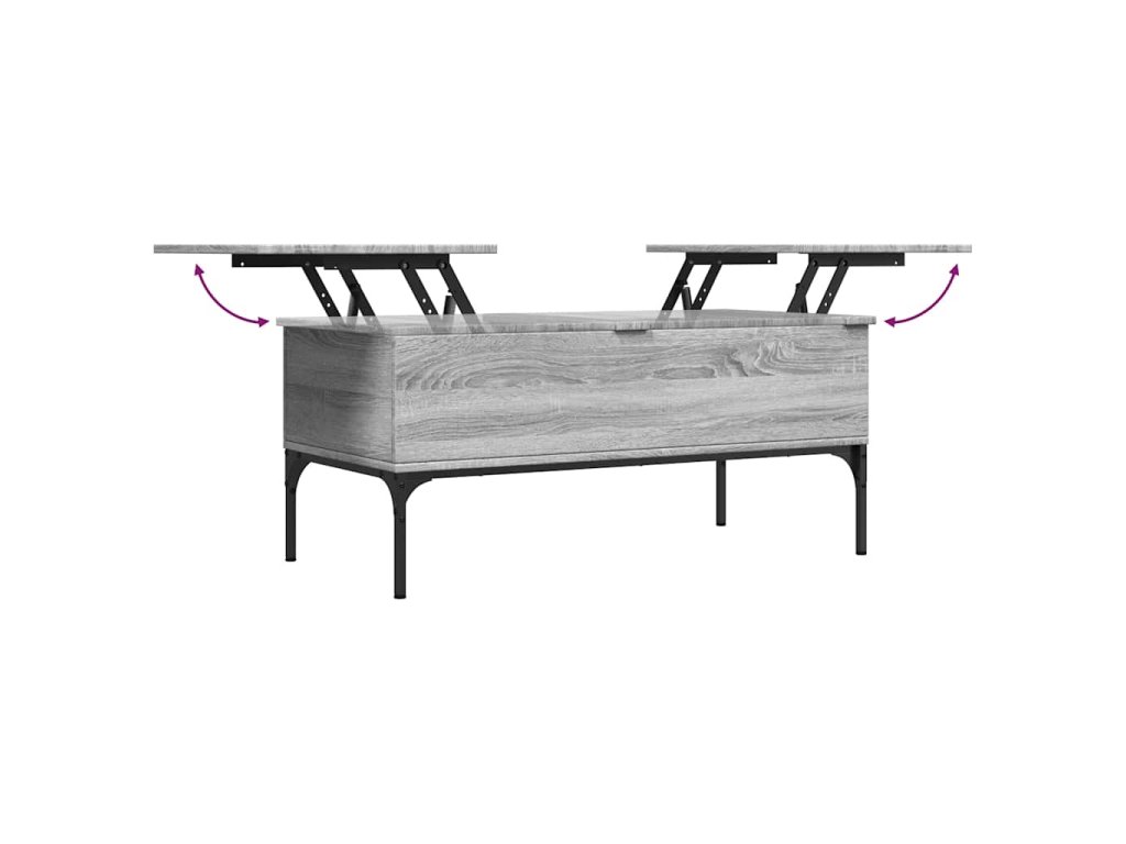 - Design se zvedací deskou: Stolní deska tohoto stolku k pohovce se dá hladce zvednout do pohodlné výšky, a tím jej přeměnit na místo, kde můžete pracovat nebo stolovat.