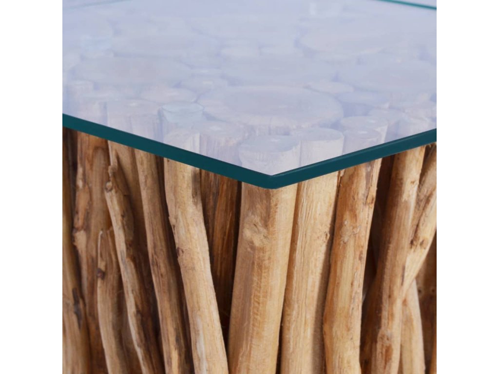 Konferenční stolek skleněná deska 66 x 66 x 40 cm masivní teak 288814