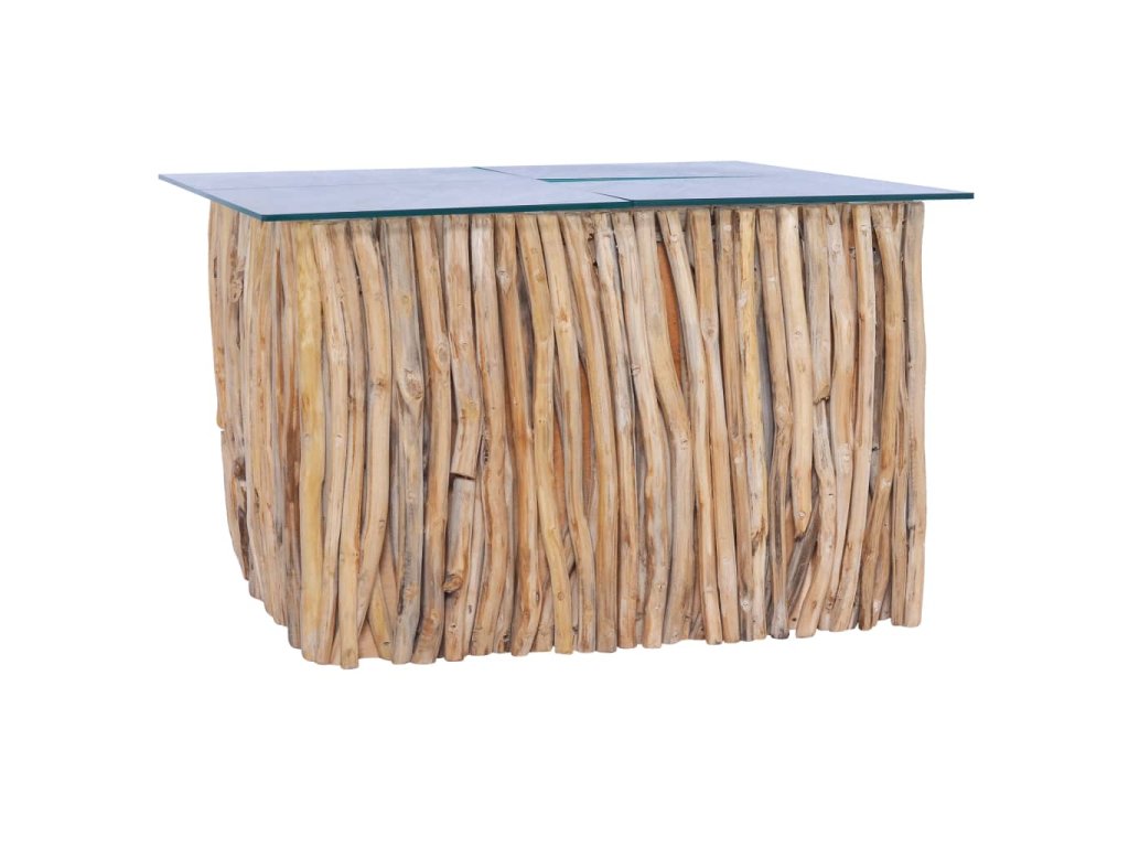 Tento konferenční stolek je ručně vyrobený z masivního teakového dřeva a skla, takže je odolný a stabilní. Precizní zpracování a nádherná kresba dřeva dávají každému kusu nábytku jedinečný charakter, kterým se lehce liší od všech ostatních. Akcentový stolek rovněž využijete jako odkládací stolek ke gauči nebo pohovce či zkrátka jako stolek do obývacího pokoje.
