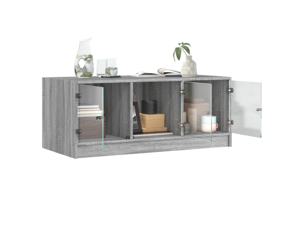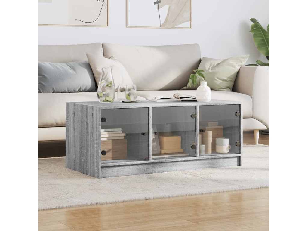 Konferenční stolek skleněná dvířka šedý sonoma 102x50x42 cm 836418