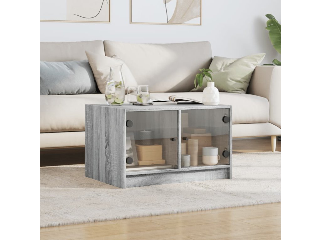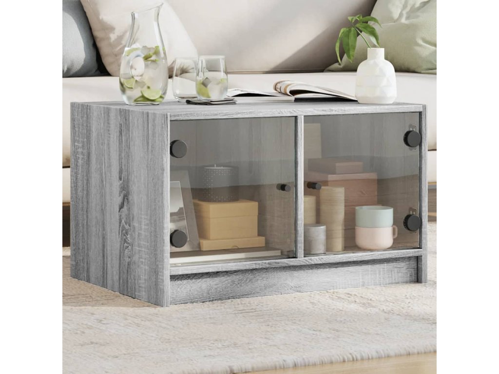 Konferenční stolek skleněná dvířka šedý sonoma 68x50x42 cm 836369