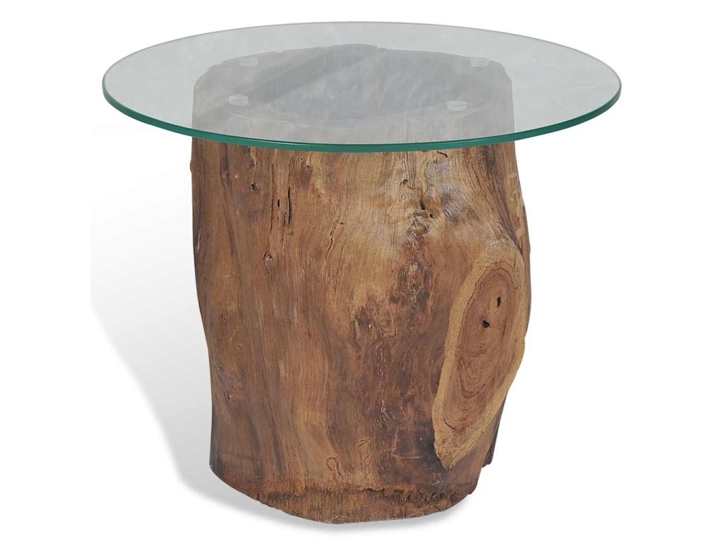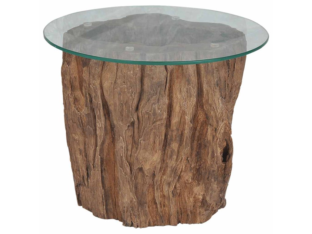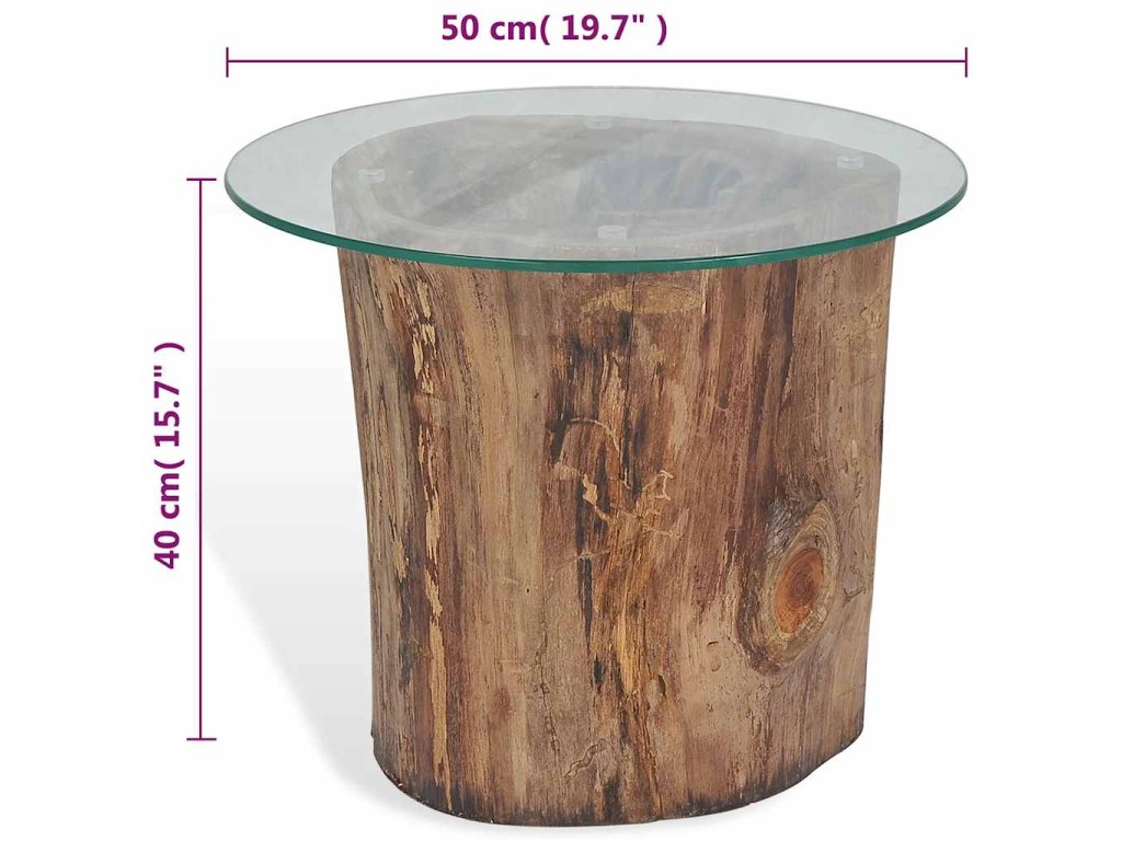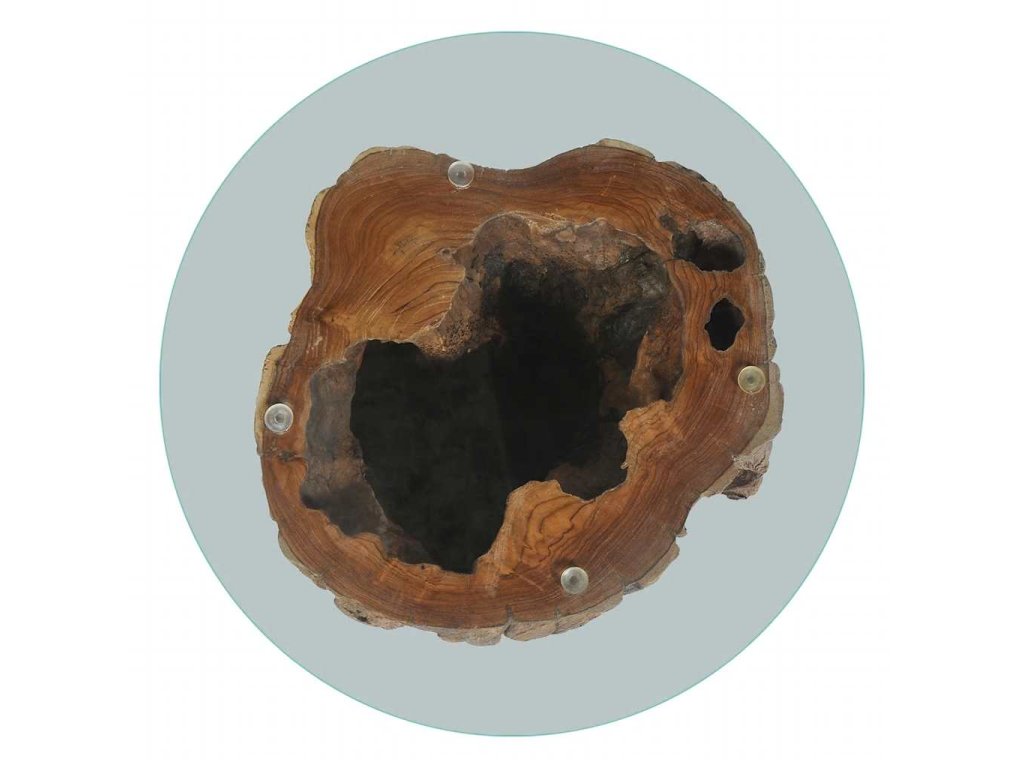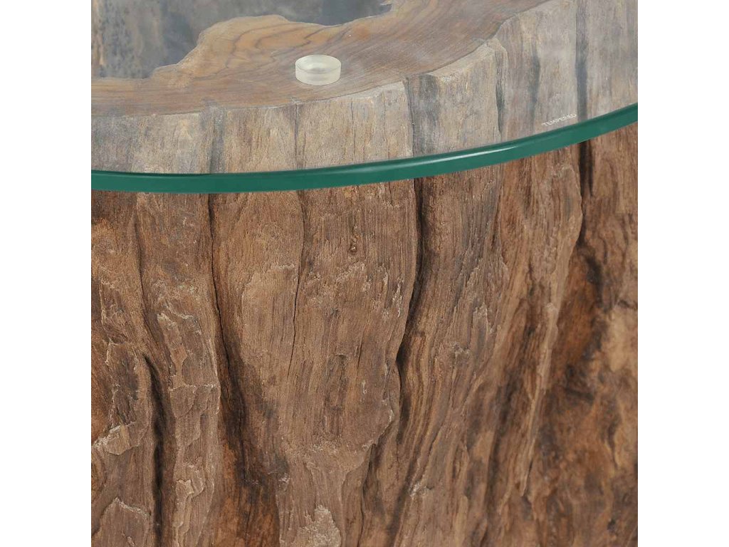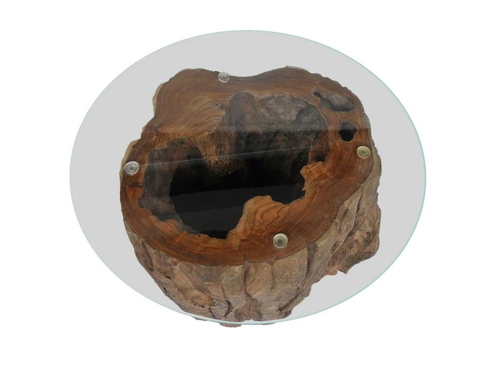 Deska stolku je vyrobená z tvrzeného skla. Bez obav si na ni můžete odkládat nápoje nebo vystavovat vázy, mísy s ovocem a jiné dekorace. Stolek lze také použít jako odkládací stolek. Jeho stabilní odolná základna ve stylu kmene stromu je z vysoce kvalitního teaku. Sestavení je snadné.