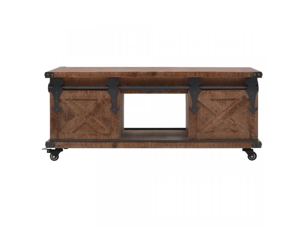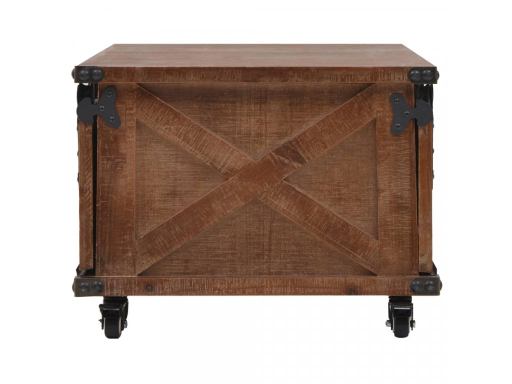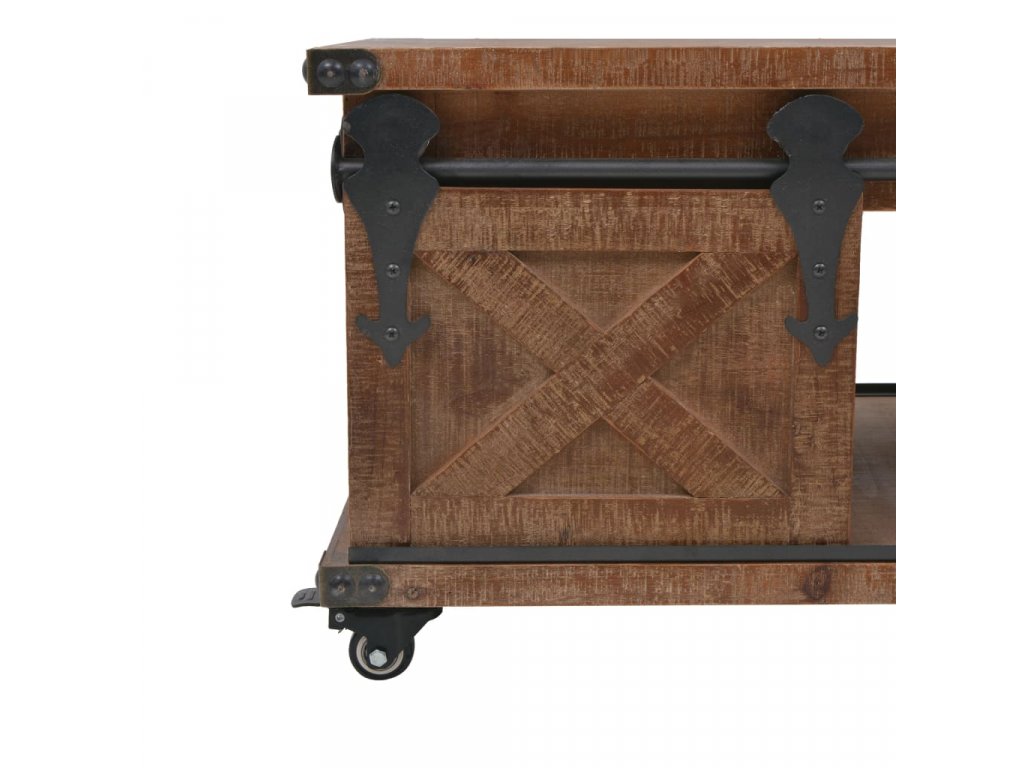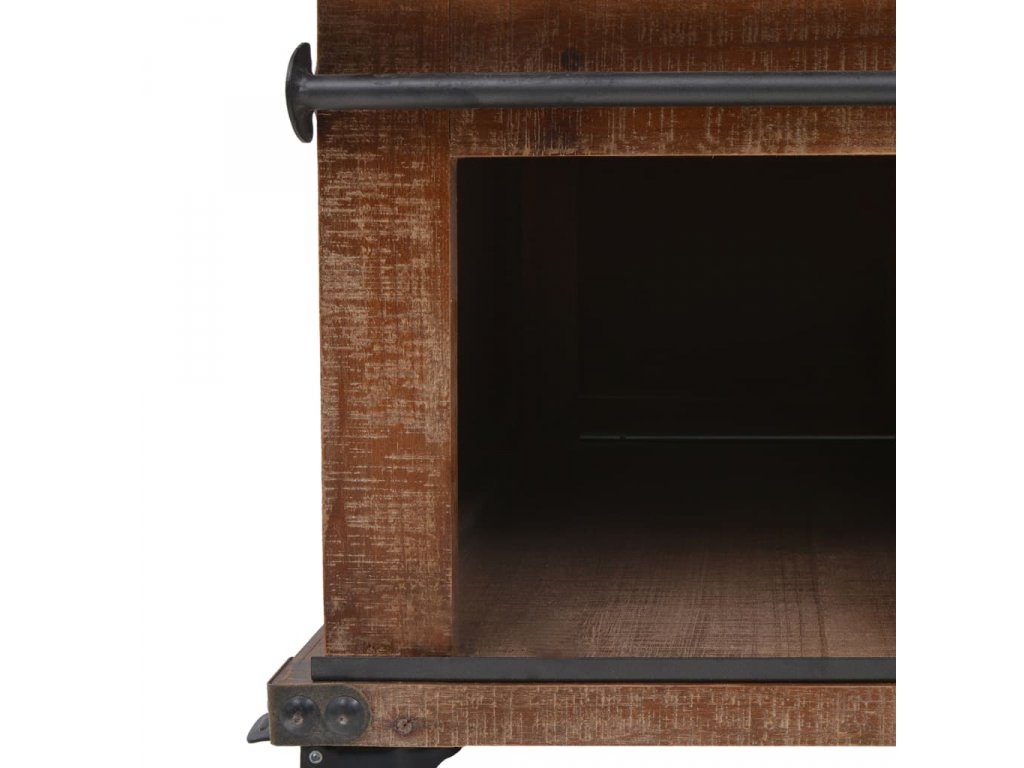 Vysoce stabilní a odolný odkládací stolek je vyrobený z masivního jedlového dřeva, jež vyzařuje půvabné vintage kouzlo a dodává stolku rustikální rysy. Pevná horní deska je ideální pro vystavování košíků s ovocem, váz nebo jiných dekorativních předmětů. Konferenční stolek vám poskytne spoustu místa pro přehledné uspořádání vašich nejrůznějších potřeb. Jedinečný posuvný design umožňuje snadné otevírání a zavírání dvířek a zároveň podtrhuje industriální vintage styl nábytku. Stolek je vybaven čtyřmi flexibilními kolečky, můžete ho tedy bez obtíží přesouvat po celém domě.