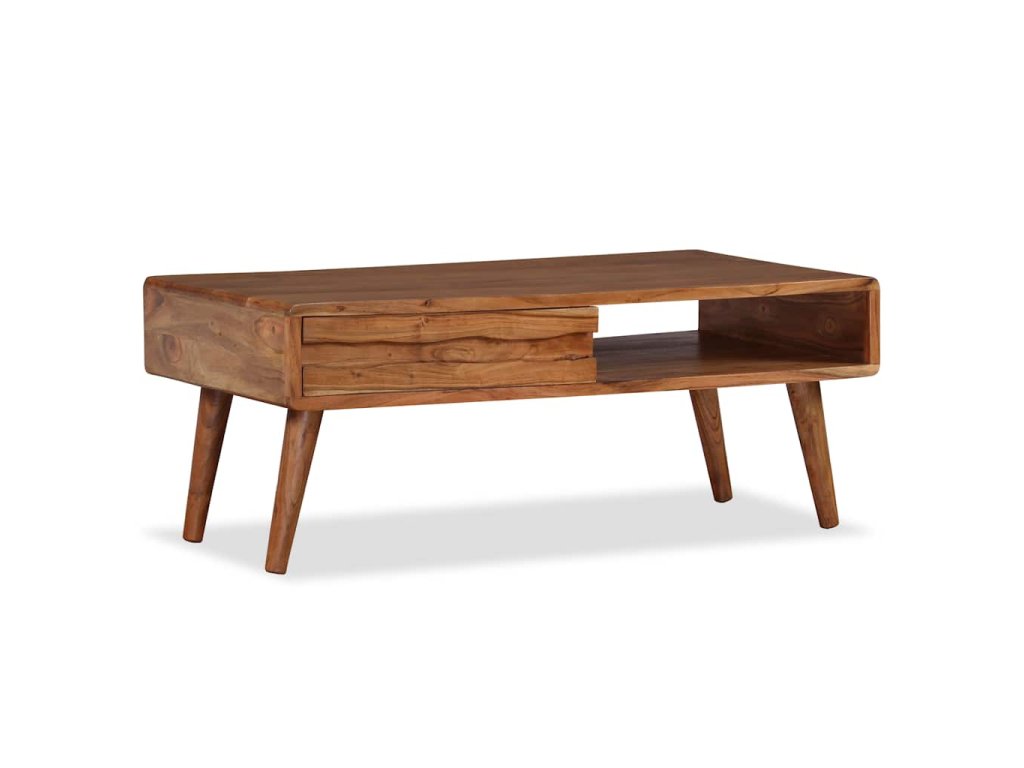 Konferenční stolek je vyroben z krásně vyleštěného, natřeného a nalakovaného akáciového masivního dřeva, které tomuto nábytku propůjčuje rafinovaný vzhled. Tento stůl je ručně vyrobený a také krásná kresba dřeva činí každý kus nábytku jedinečný a lehce odlišný od ostatních. Tento stolek má pevnou a stabilní horní desku, na kterou můžete položit vaše nápoje, jídlo, košíky s ovocem a dekorativní předměty. Konferenční stolek se vyznačuje vyřezávanou zásuvkou a přihrádkou, které poskytují dodatečný prostor k uložení vašich časopisů, knih, TV ovladačů a maličkostí, které chcete mít po ruce. Montáž je snadná.