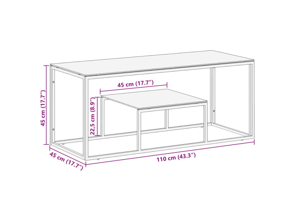 - Robustní a stabilní rám: Stolek do obývacího pokoje má rám z nerezové oceli, což mu zajišťuje mimořádnou pevnost a stabilitu.