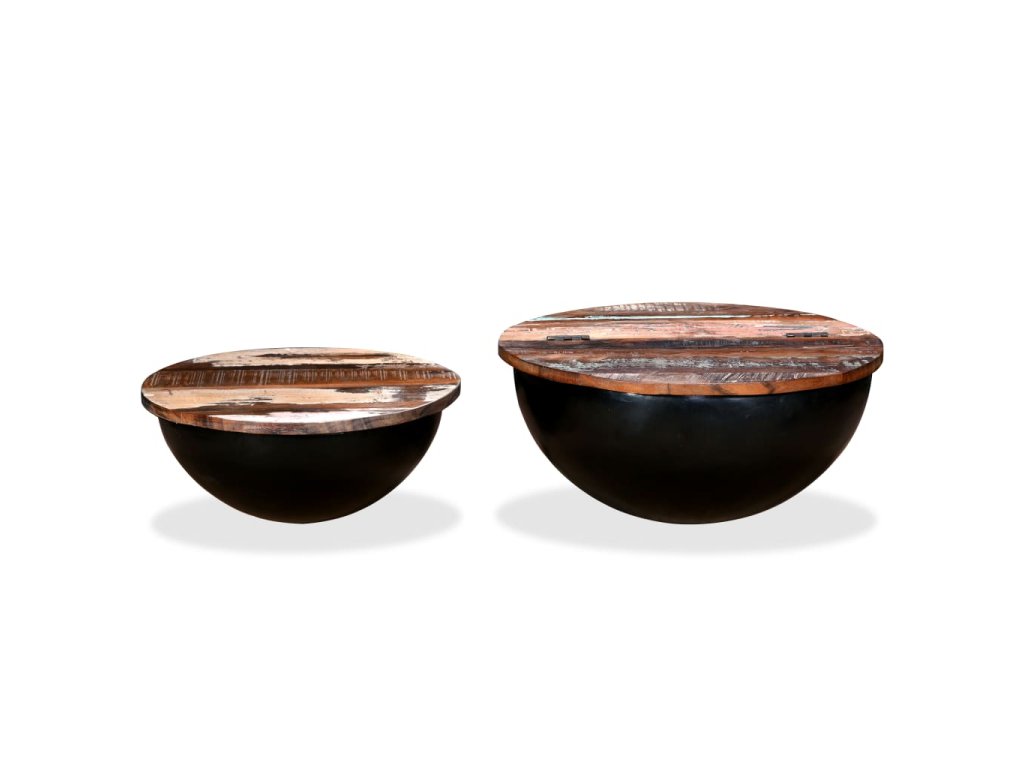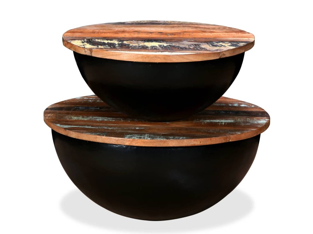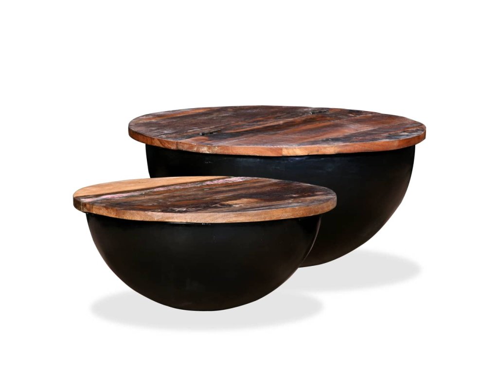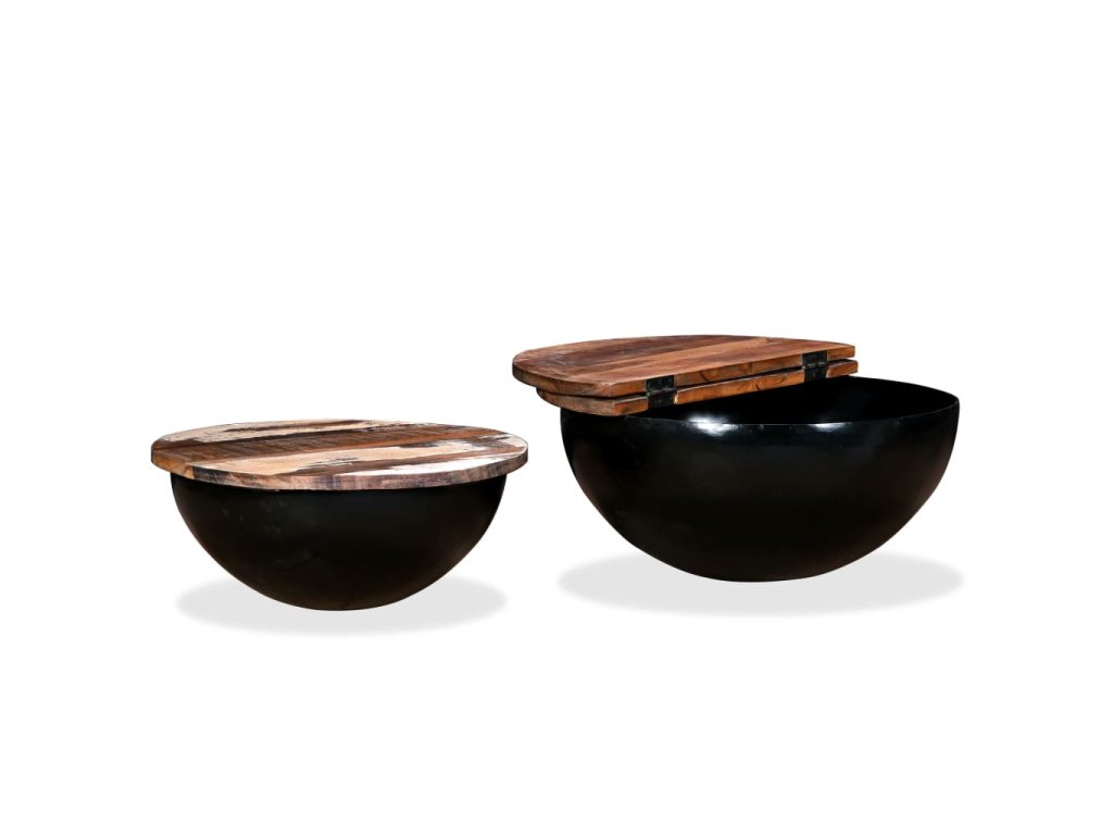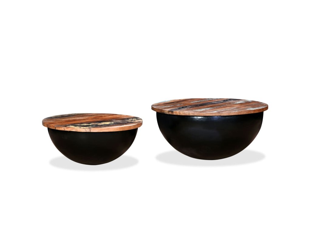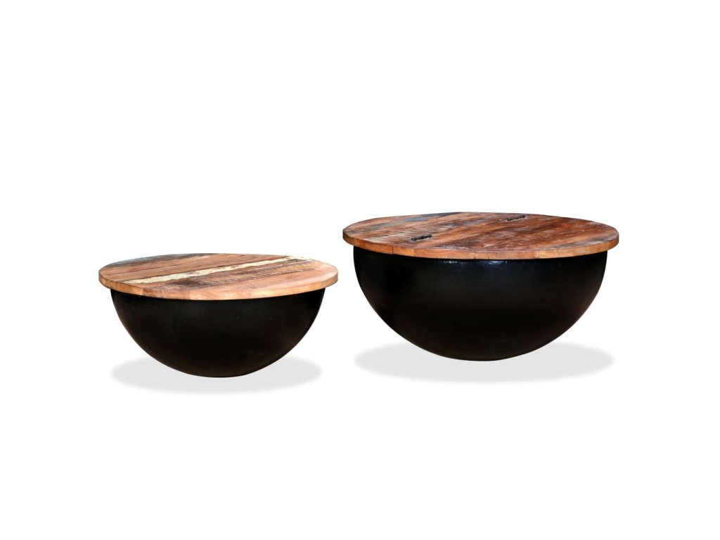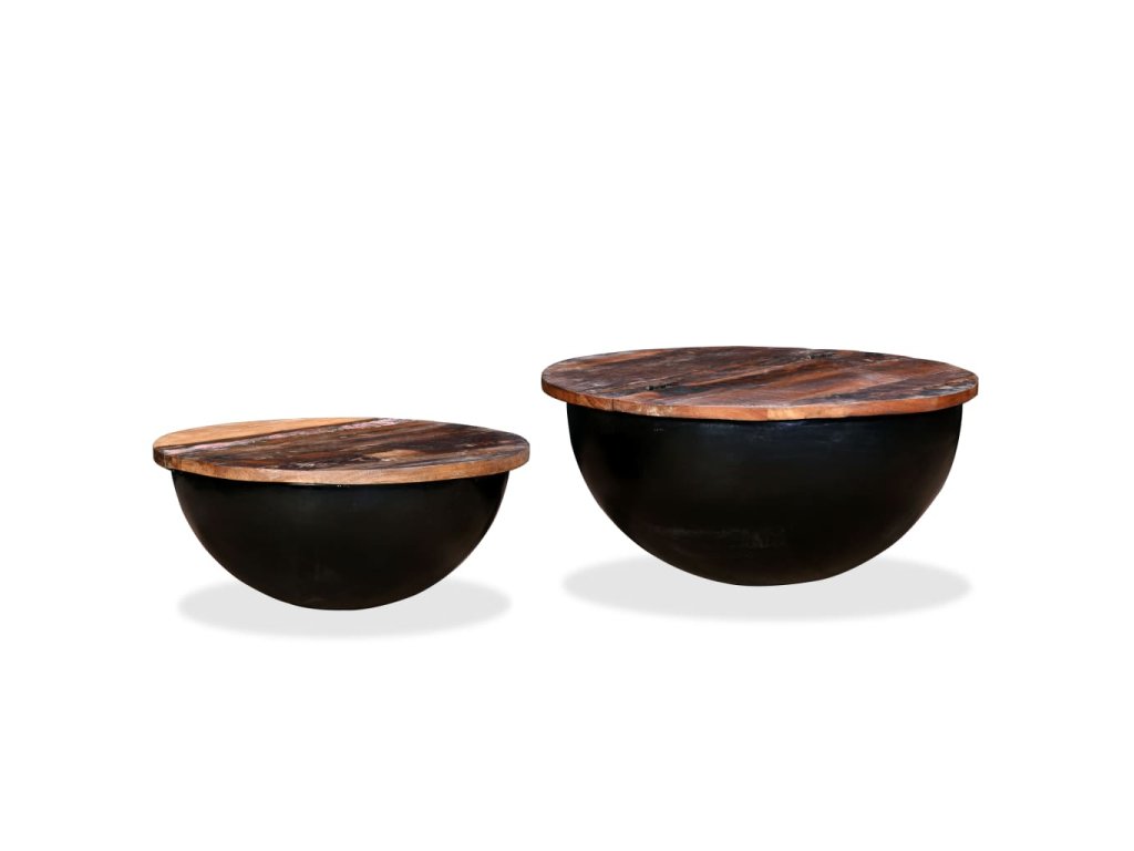 Konferenční stolky 2 ks masivní recyklované dřevo černé miska 245257
