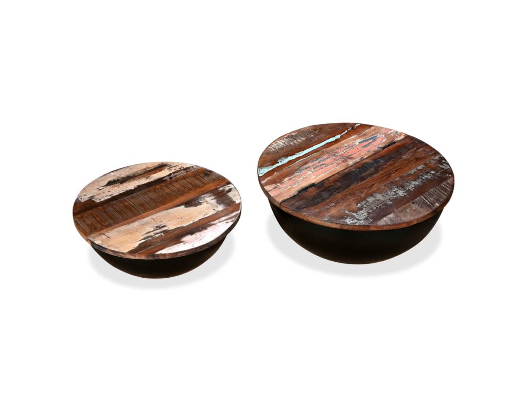 Stolní deska je vyrobená z masivního recyklovaného dřeva, což znamená, že každý stolek je jedinečný, lehce se liší od všech ostatních a má charakteristické znaky různých druhů dřeva, jako je teak, akácie, mangovník atd. Recyklované dřevo je masivní, stabilní, odolné a krásné. Konferenční stolek prošel pečlivým procesem leštění, natírání a lakování. Uvolněte se a užijte si zábavu se svou rodinou kolem tohoto jedinečného setu konferenčních stolků!