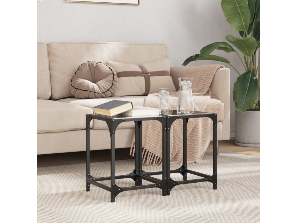 Konferenční stolky černá skleněná deska 2 ks 30x30x40 cm ocel 845953