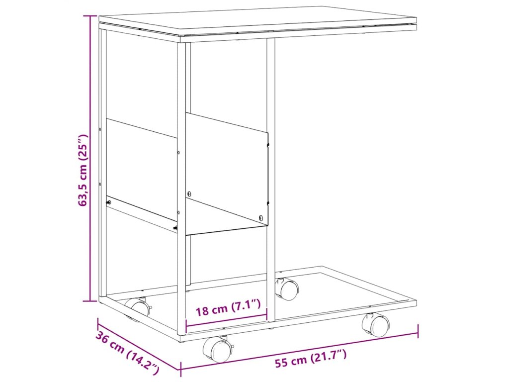 - Uživatelsky příjemný design: Design ve tvaru C a čtyři kolečka usnadňují umístění čajového stolku vedle pohovky, postele nebo na jakémkoli zvoleném místě. A co víc, je vybaven policí, kde budete mít všechny věci na dosah ruky.