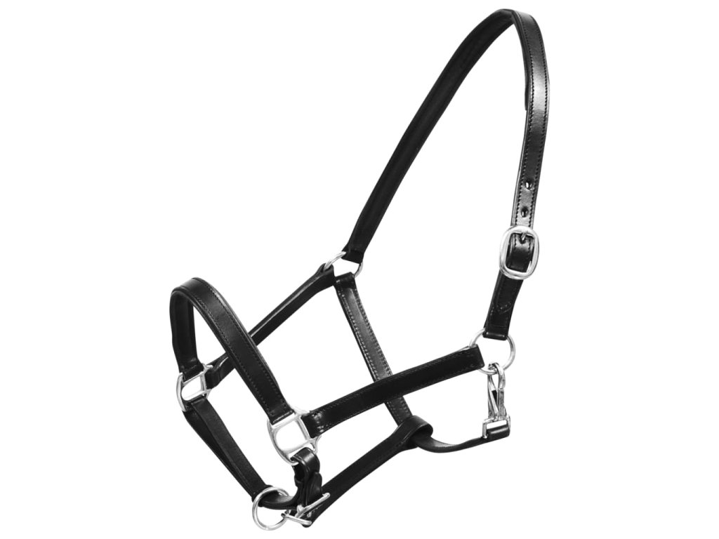 Ohlávka z pravé kůže pevná nastavitelná černá full 90891