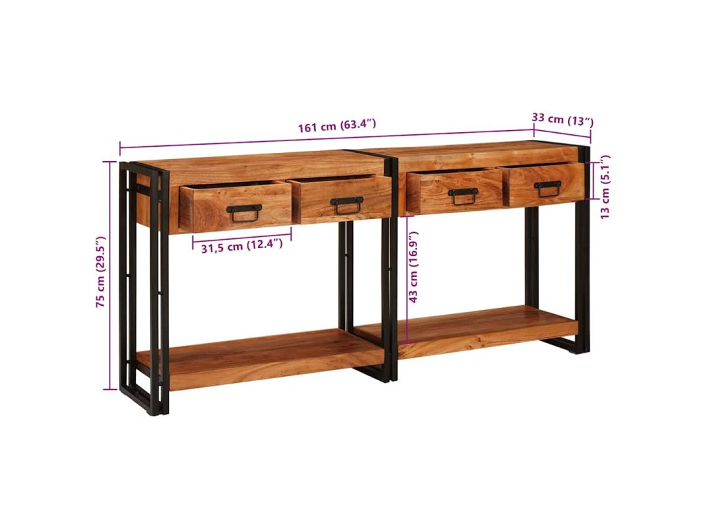 Konzolové stolky se zásuvkou 2 pcs Hnědá Pevné akáciové dřevo 3324224