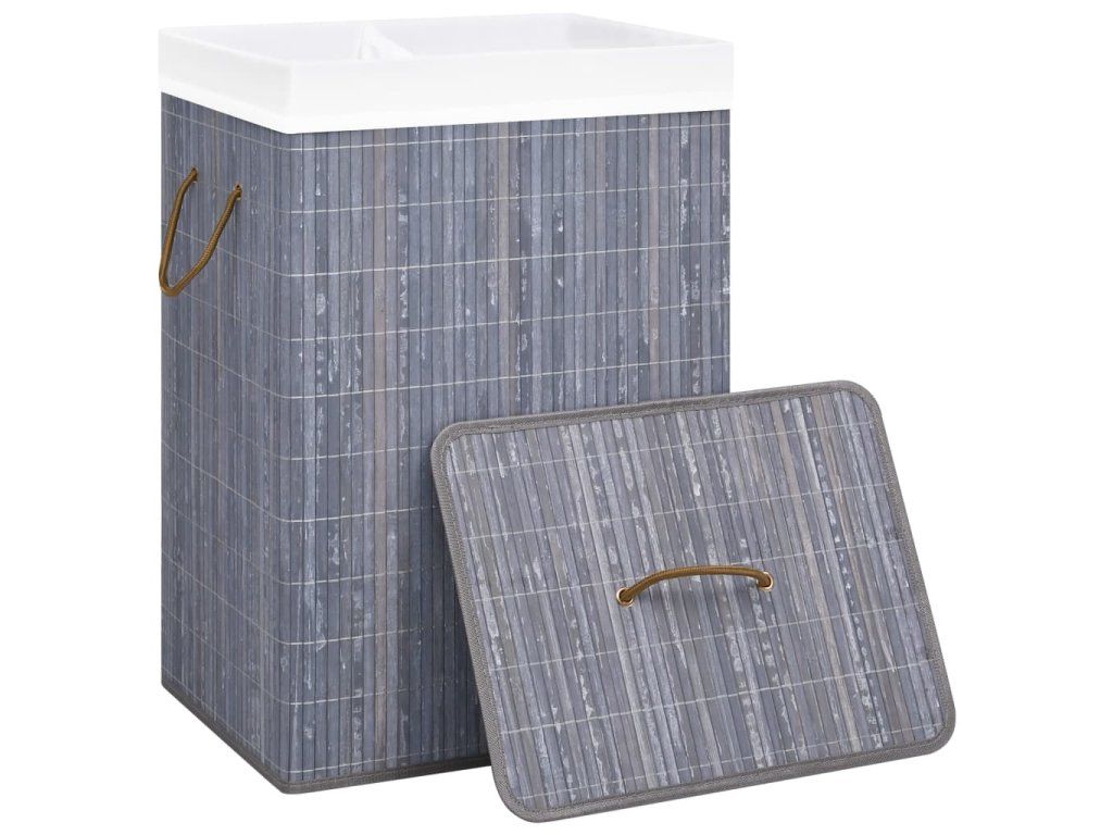Bambusový koš na prádlo se 2 přihrádkami šedý 72 l 320741