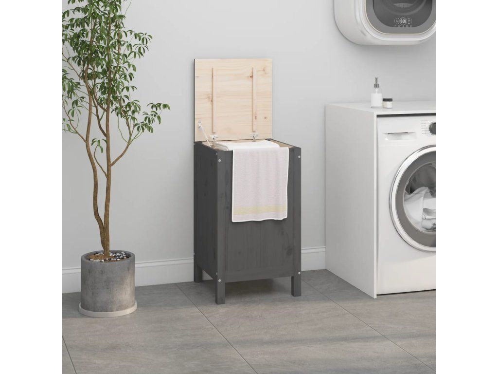 Box na prádlo šedý 44 x 44 x 76 cm masivní borové dřevo 823576