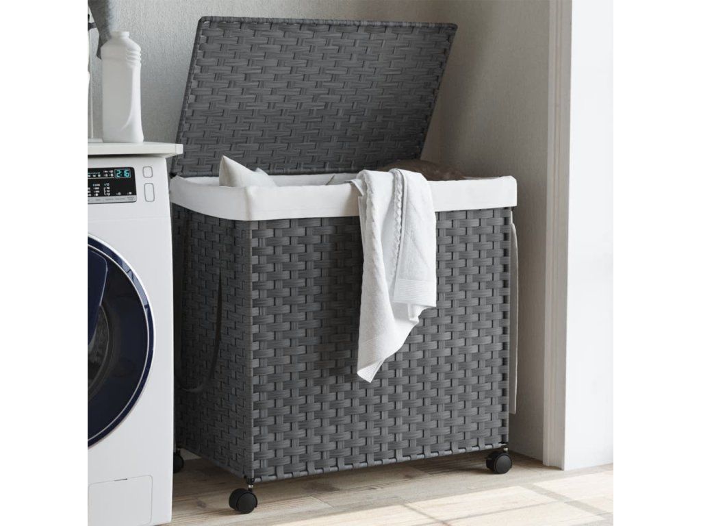 Koš na prádlo s kolečky šedý 60 x 35 x 60,5 cm ratan 372041