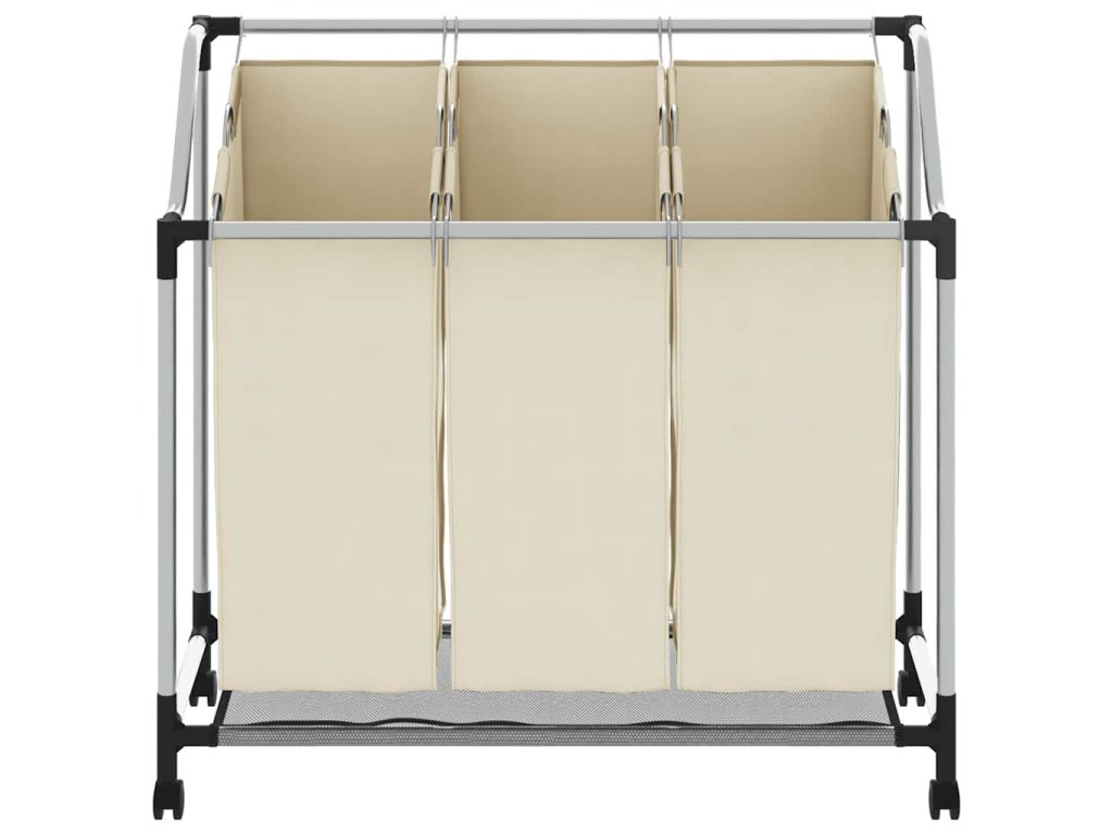 Koš na třídění prádla se 3 vaky krémový ocel 282427