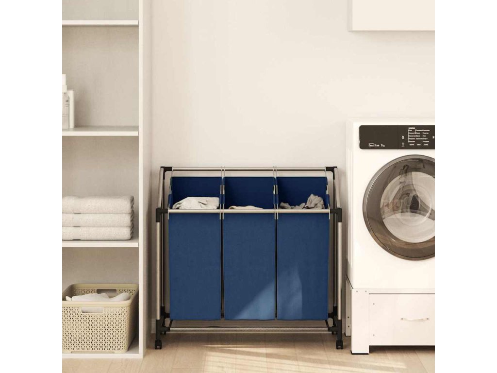Koš na třídění prádla se 3 vaky modrý ocel 288331
