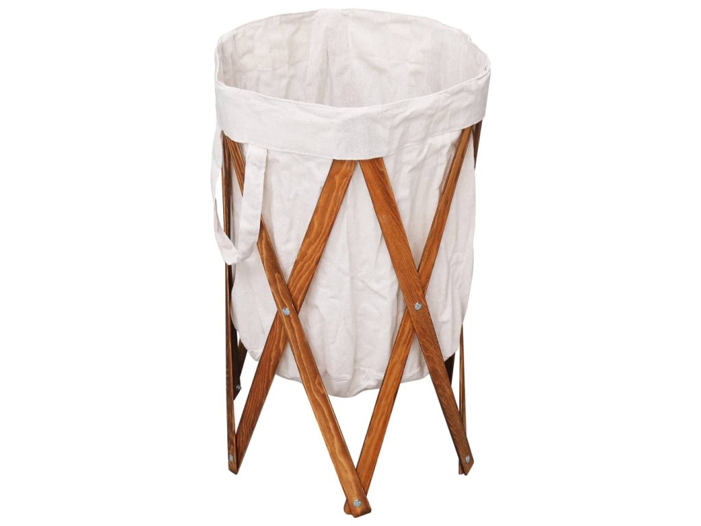 Skládací koš na prádlo krémový dřevo a textil 284227