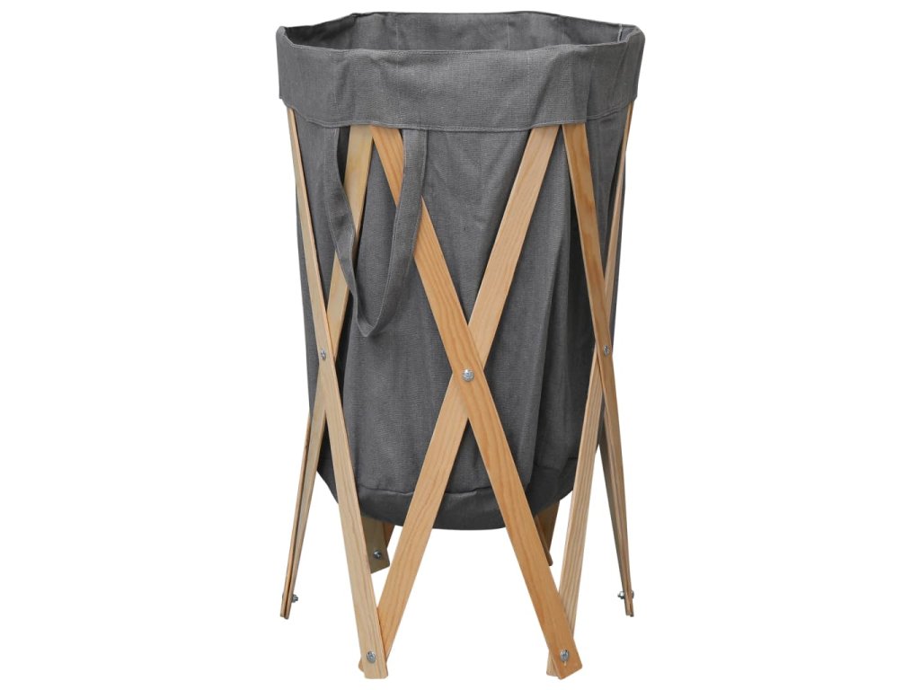 Skládací koš na prádlo šedý dřevo a textil 284228