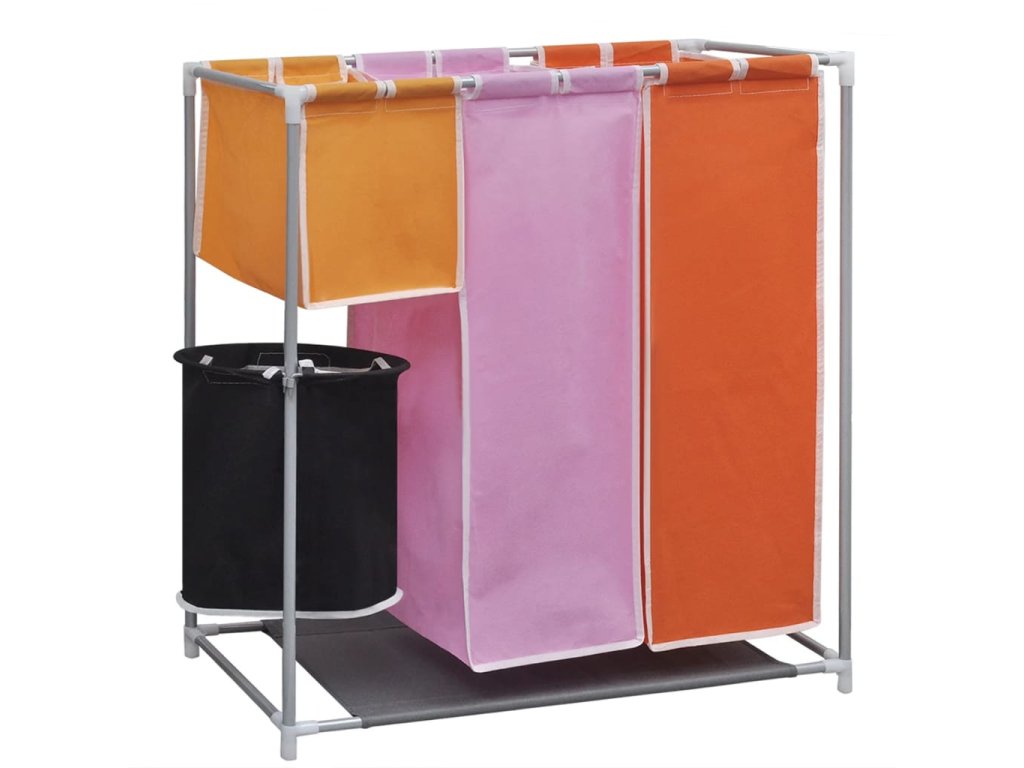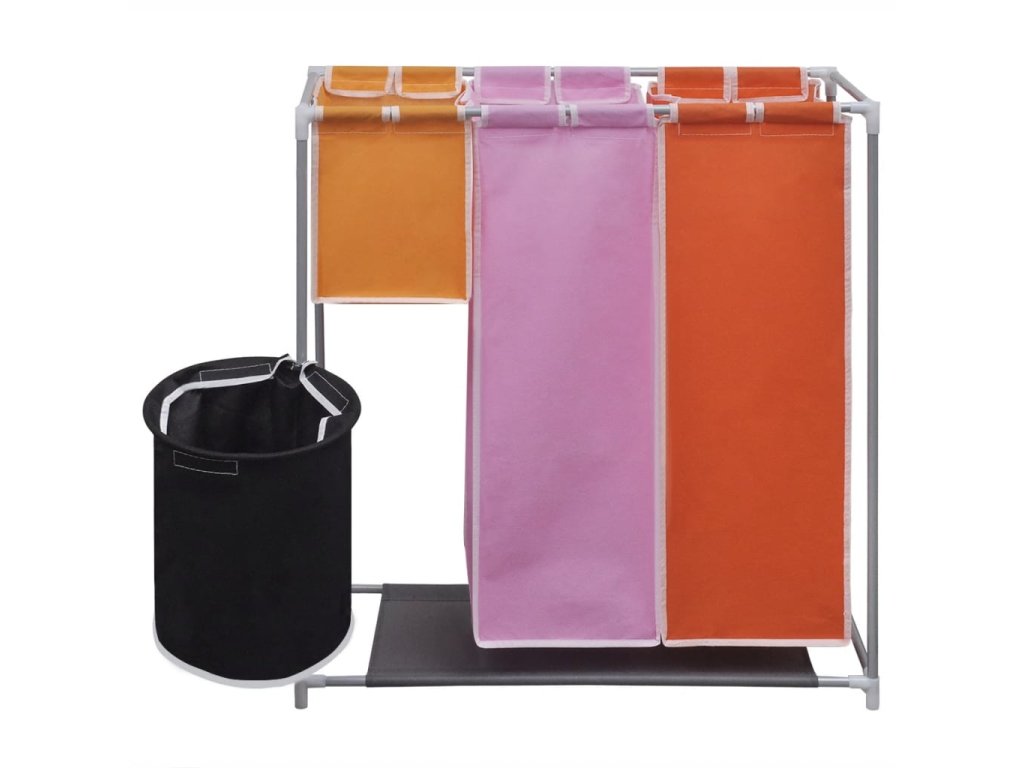Každý prací vak i prací koš se dá vyjmout a vyprat, protože jsou vyrobeny z vysoce kvalitní tkaniny. Odolný železný rám je lehký a zároveň robustní. Tento praktický výrobek má rovněž látkové dno, které ho chrání před vlhkem a špínou.