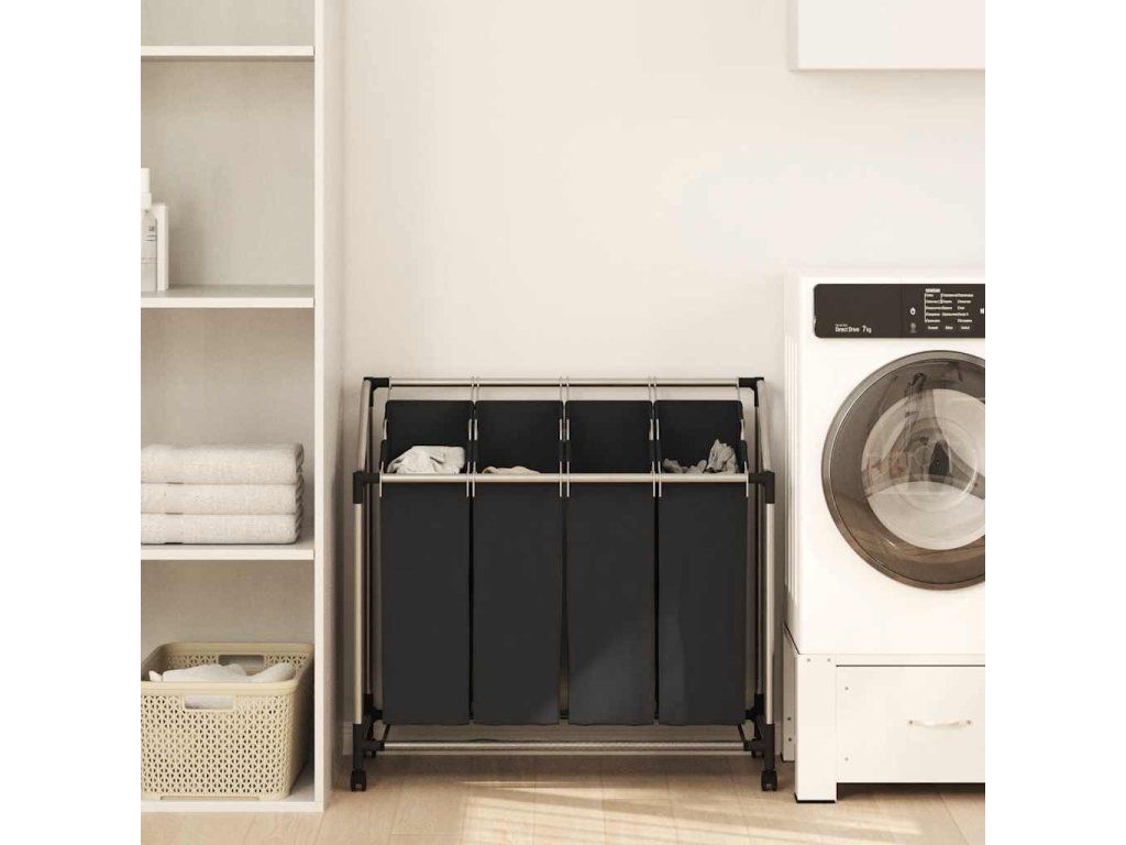 Tento koš na prádlo se 4 koši na třídění prádla umožňuje, aby jste mohli vaše bílé, barevné, tmavé a jemné prádlo oddělit nebo roztřídit prádlo, které je běžně znečištěné od prádla, které je velmi znečištěné. Koš má 4 velké koše na prádlo, které se dají snadno vyjmout pomocí pevných ocelových držadel.