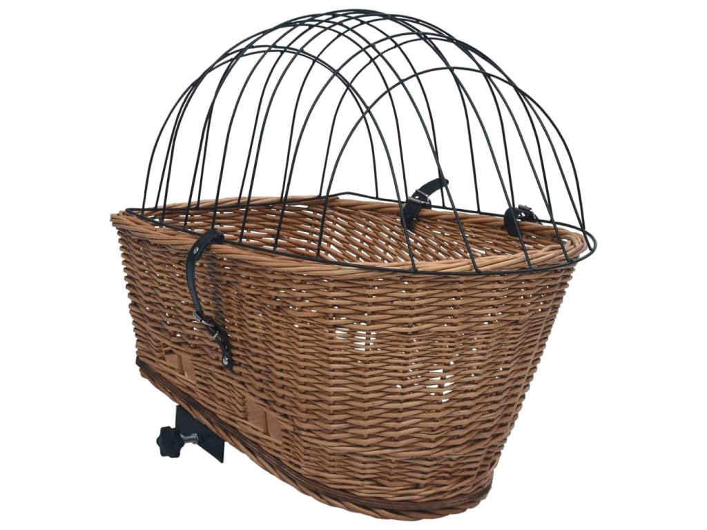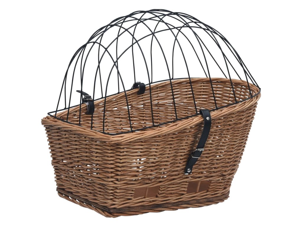 Koš je vyrobený z přírodního vrbového proutí, je tedy odolný proti roztržení a zaručuje dlouhodobé používání, ať už si ho vaši chlupatí kamarádi škrábají, jak se jim zlíbí. Přírodní dřevěný materiál neobsahuje chemikálie. Robustní uzamykací mechanismus a kryt z masivního železa udrží potraviny nebo domácí mazlíčky během vašich výletů na svém místě. Košík na zadní kolo má na dně háčky, které zaručují snadné upevnění a odstranění.