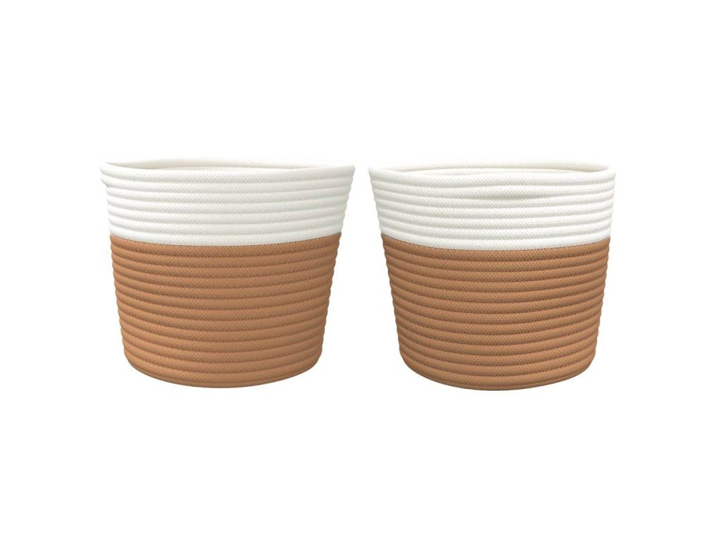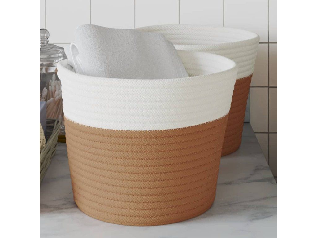 Úložné koše 2 ks hnědé a bílé Ø 24 x 18 cm bavlna 358454