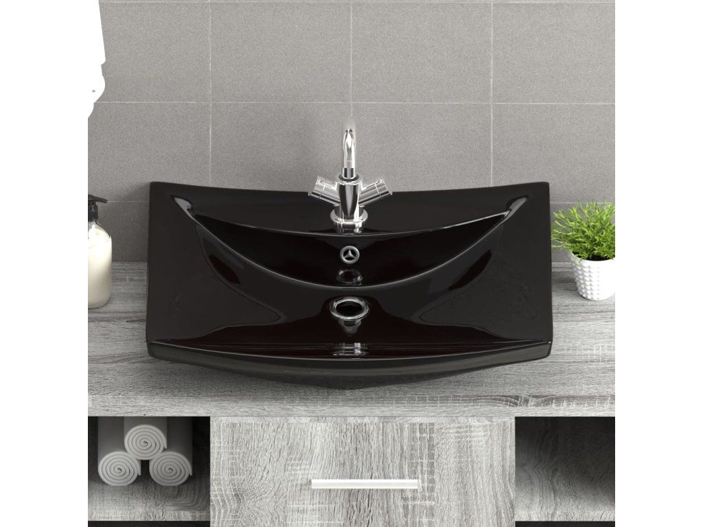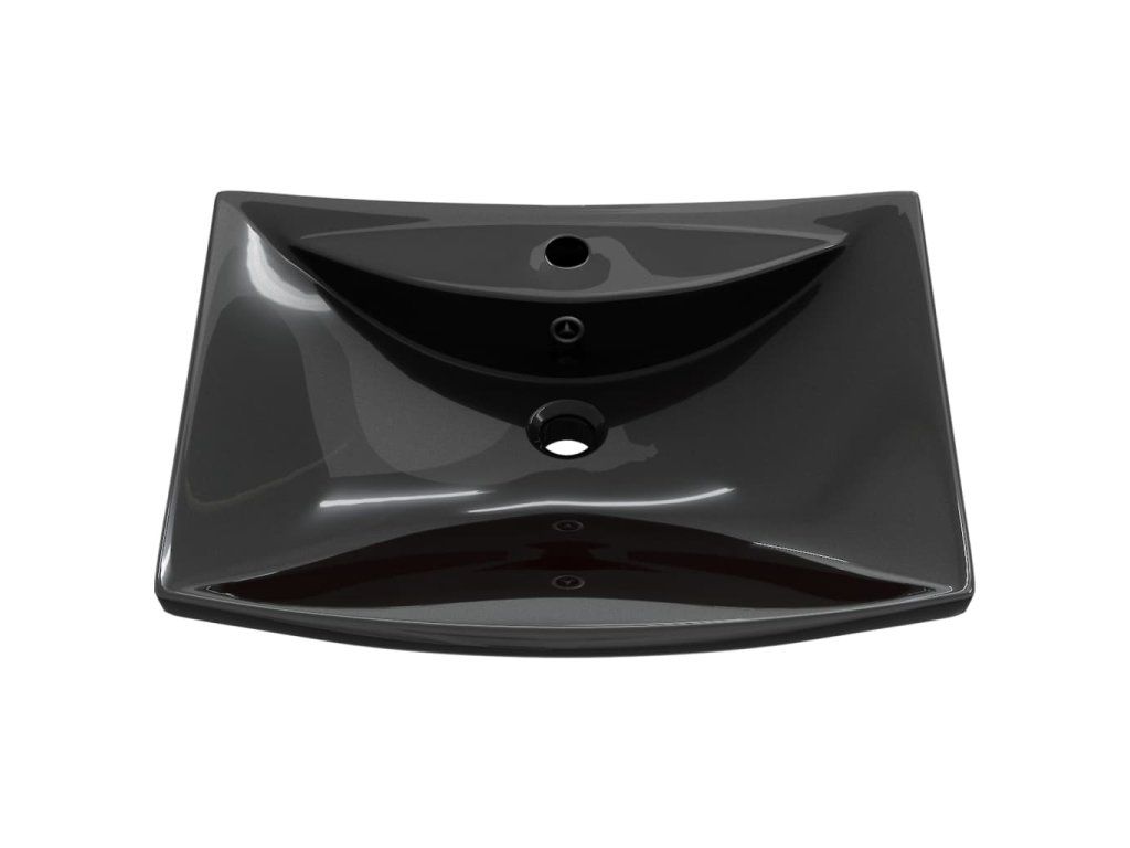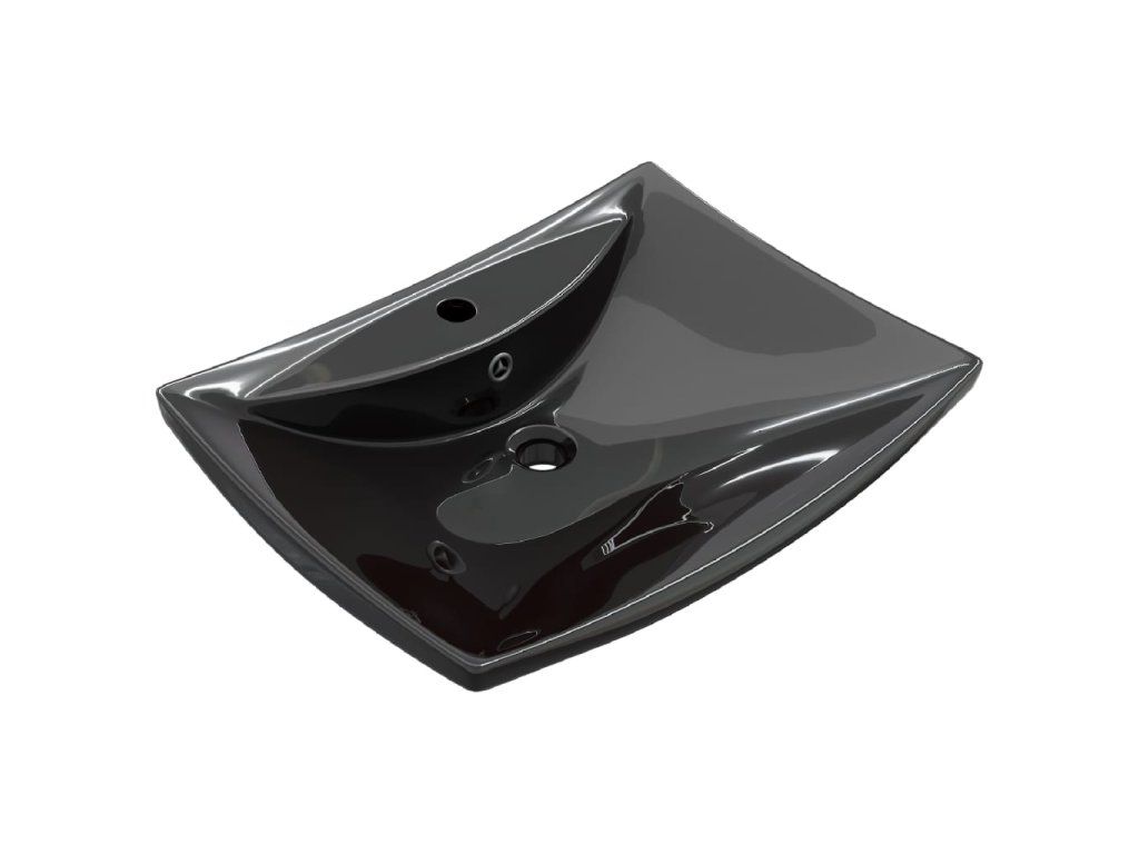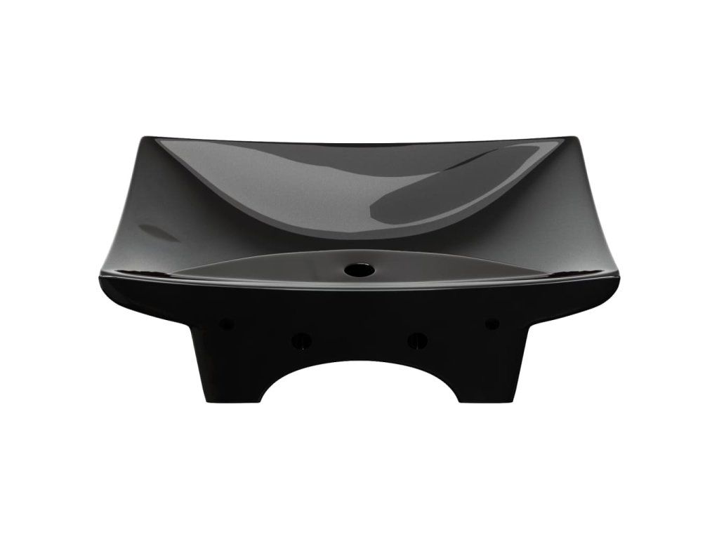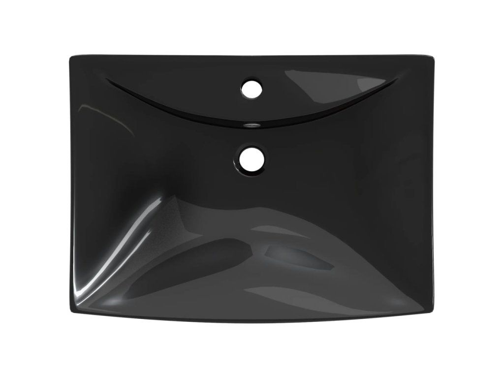 Černé luxusní keramické umyvadlo obdélníkové s přepadem a otvorem na baterii 140689
