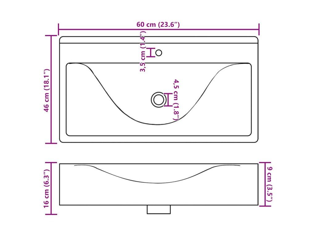 Toto obdélníkové umyvadlo, vyrobené z prvotřídní keramiky, bude stylovým doplňkem do každé koupelny, umývárny nebo na toaletu. Má vysoce lesklý povrch a moderní, a zároveň elegantní design.