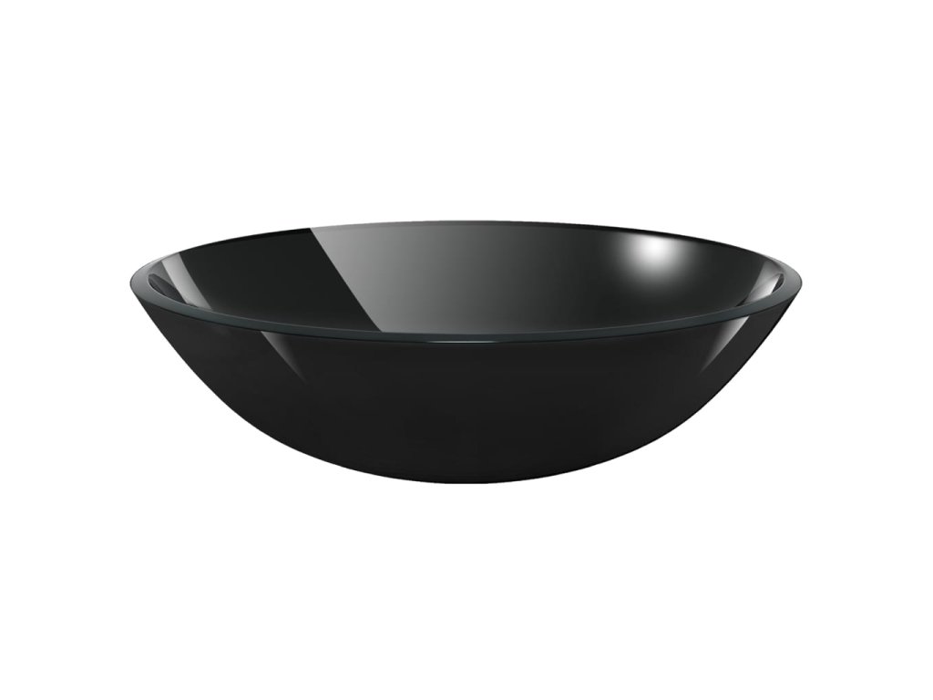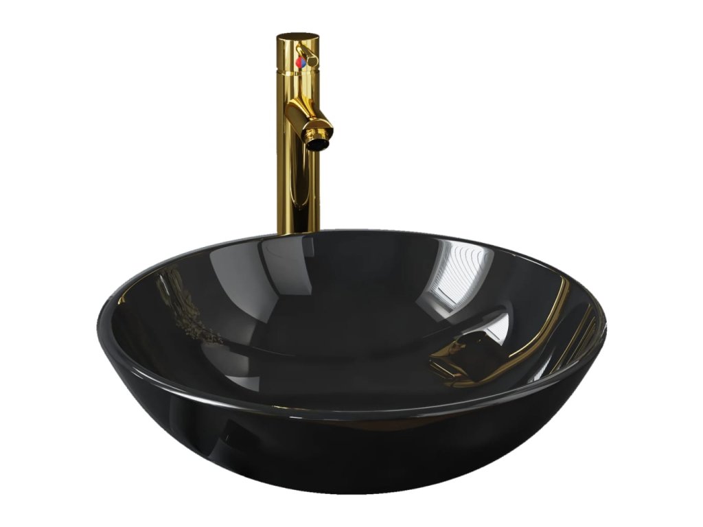 Koupelnové umyvadlo s baterií a výpustí černé tvrzené sklo 3098451