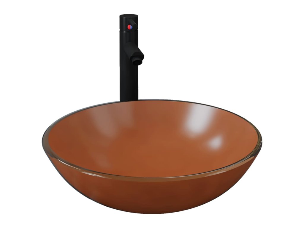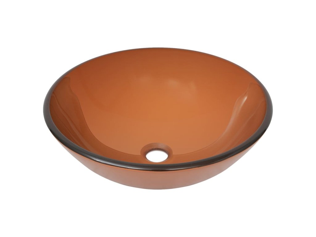 Koupelnové umyvadlo s baterií a výpustí hnědé tvrzené sklo 3098455