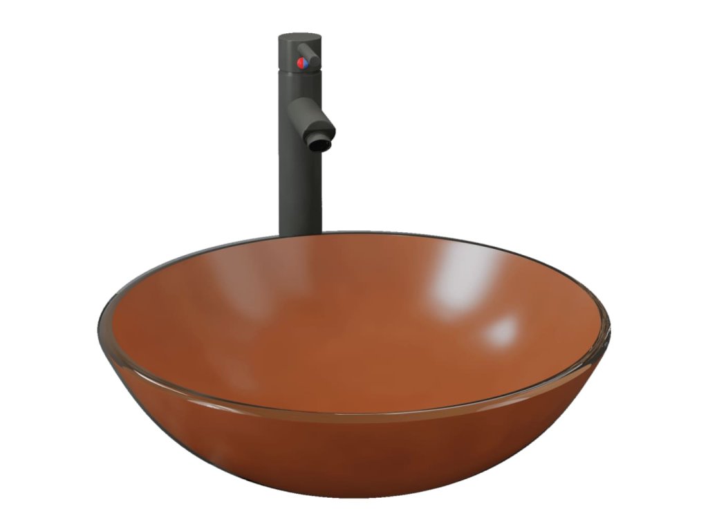 Koupelnové umyvadlo s baterií a výpustí hnědé tvrzené sklo 3098457