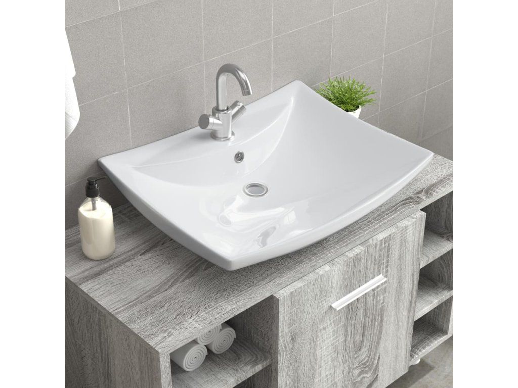Luxusní keramické umyvadlo obdélníkové s přepadem a otvorem na baterii 140688