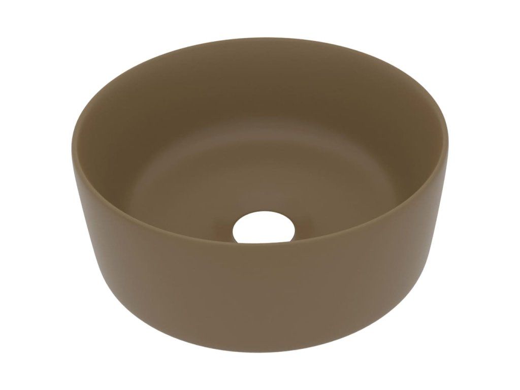 Luxusní umyvadlo kulaté matné krémové 40 x 15 cm keramické 147018