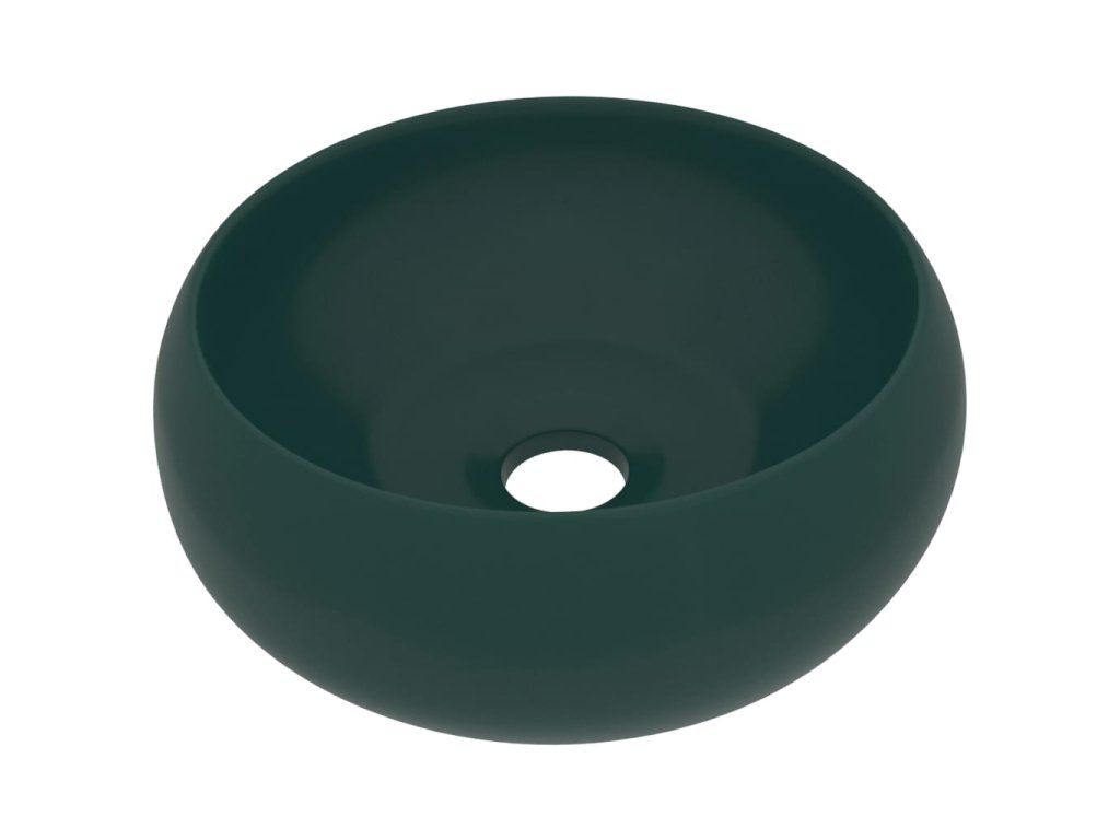 Luxusní umyvadlo kulaté matné tmavě zelené 40 x 15 cm keramické 147003