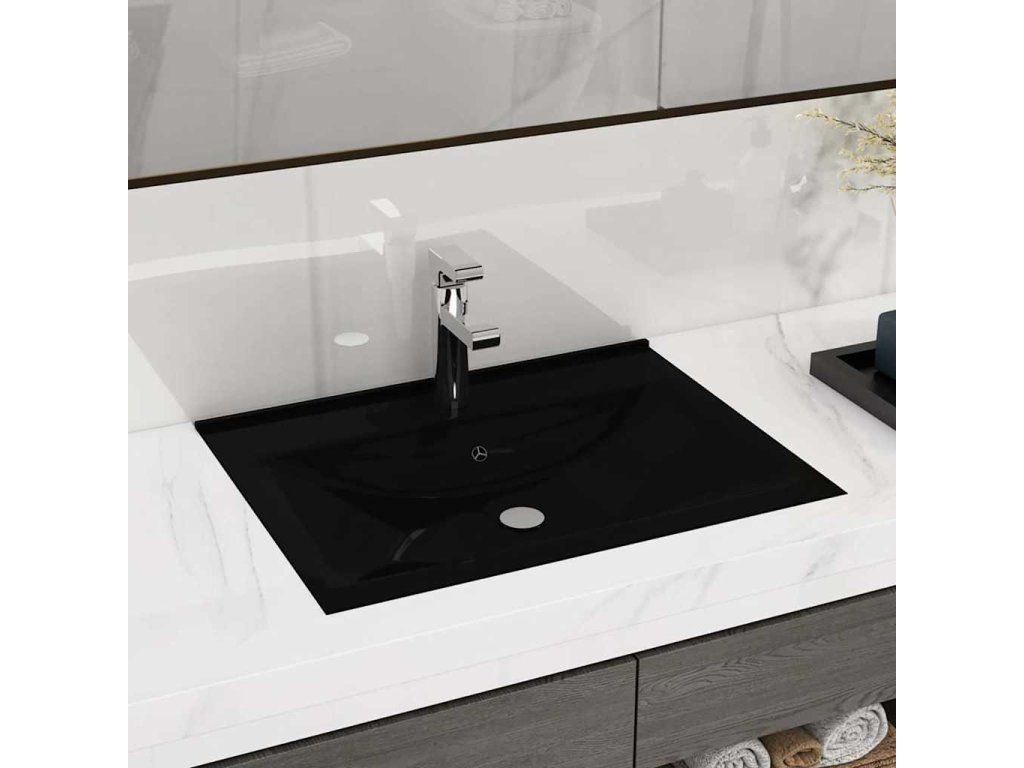 Luxusní umyvadlo otvor na baterii matné černé 60x46 cm keramika 147030