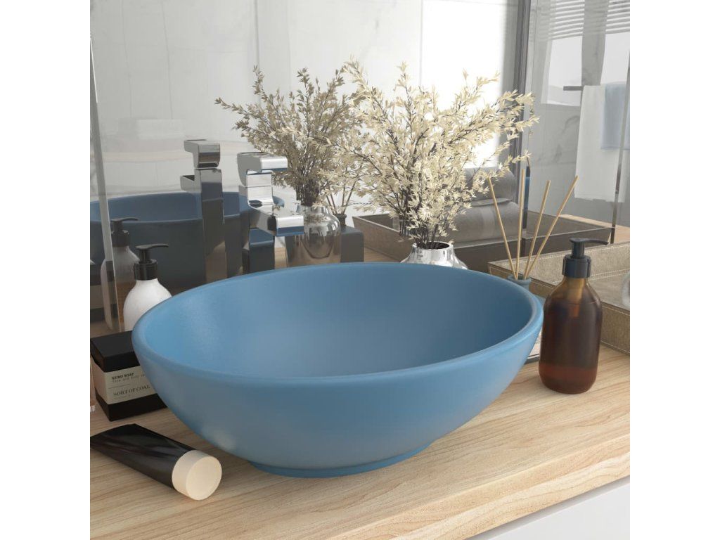 Luxusní umyvadlo oválné matně světle modré 40 x 33 cm keramika 146923