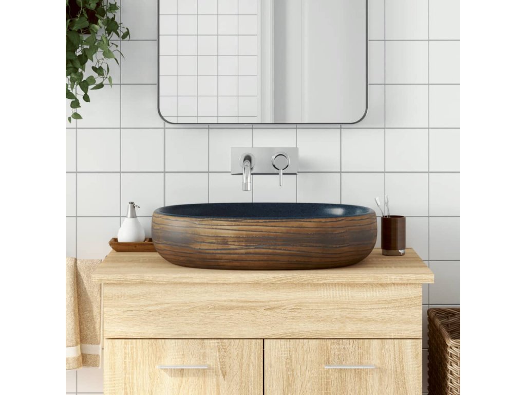 Umyvadlo na desku hnědé a modré oválné 59 x 40 x 14 cm keramika 155100
