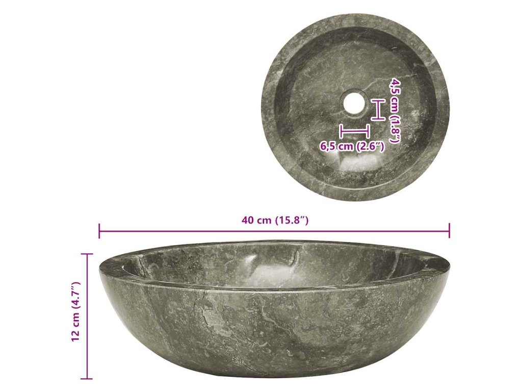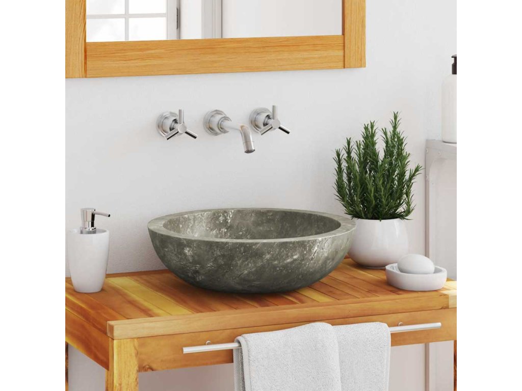 Umyvadlo šedé Ø 40 x12 cm mramor 149157