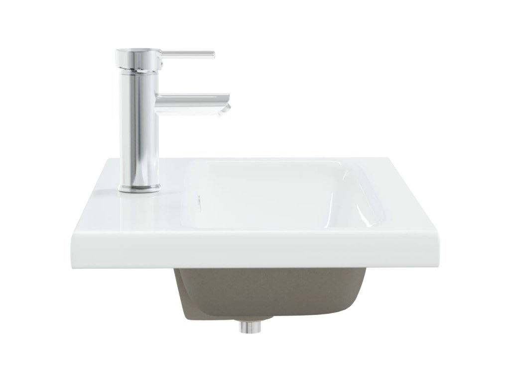 Toto zápustné umyvadlo s baterií představuje stylový a nadčasový doplněk do každé koupelny, umývárny, šatny nebo na toalety.