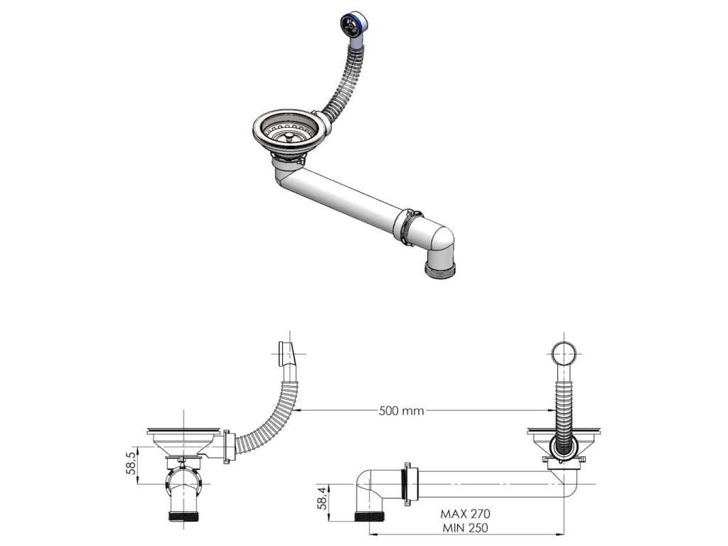 - Průměr odtokového otvoru: 45 mm
