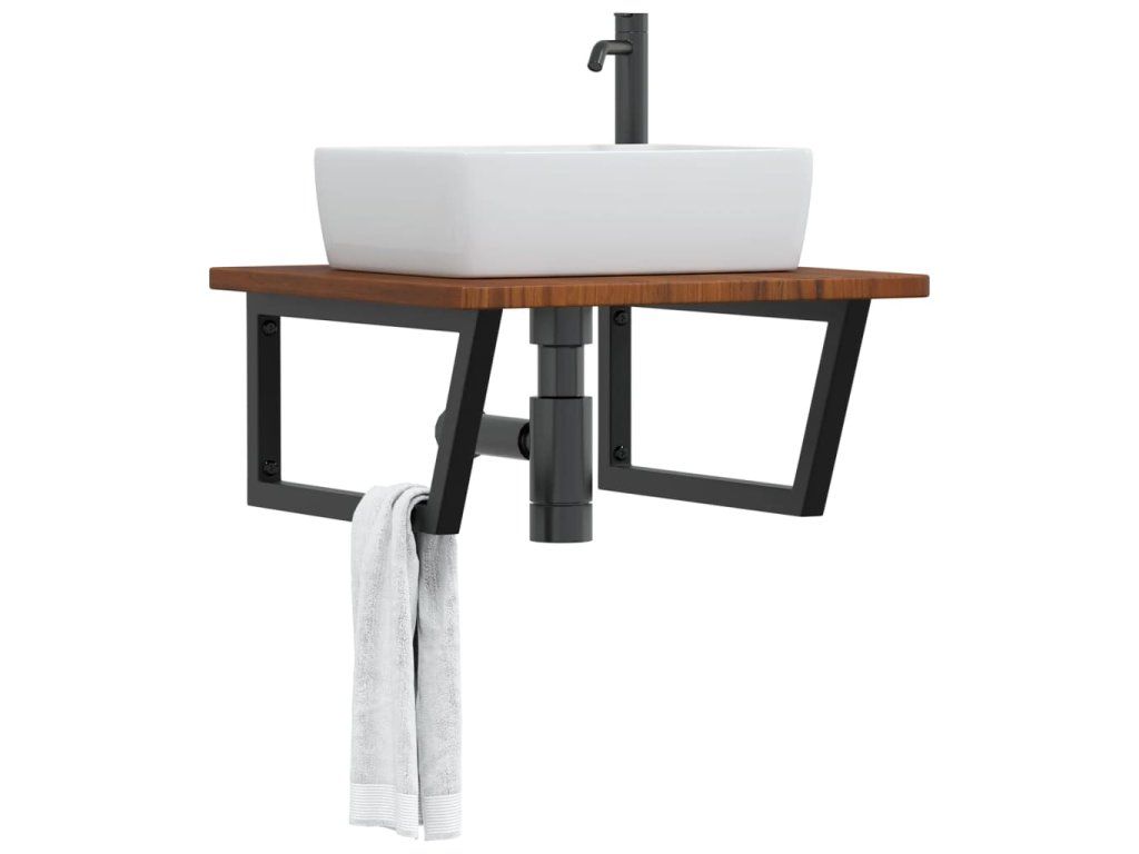 Deska pod umyvadlo nástěnná ocel a masivní dubové dřevo 3302487