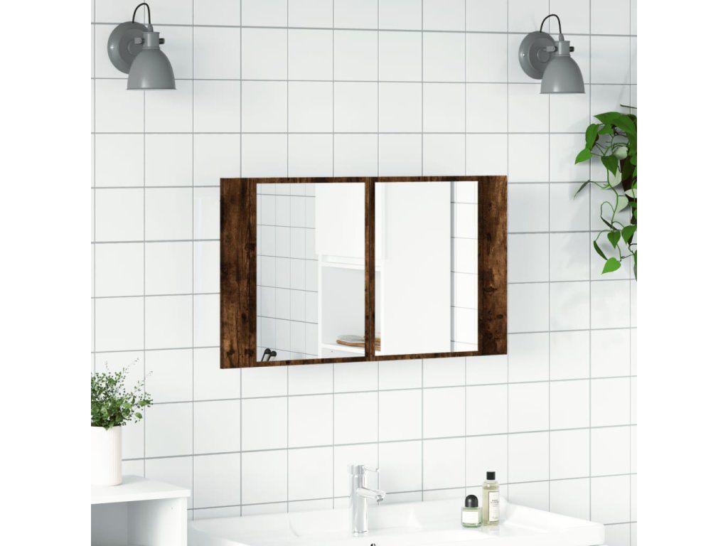 LED koupelnová skříňka se zrcadlem kouřový dub 80x12x45cm akryl 834951