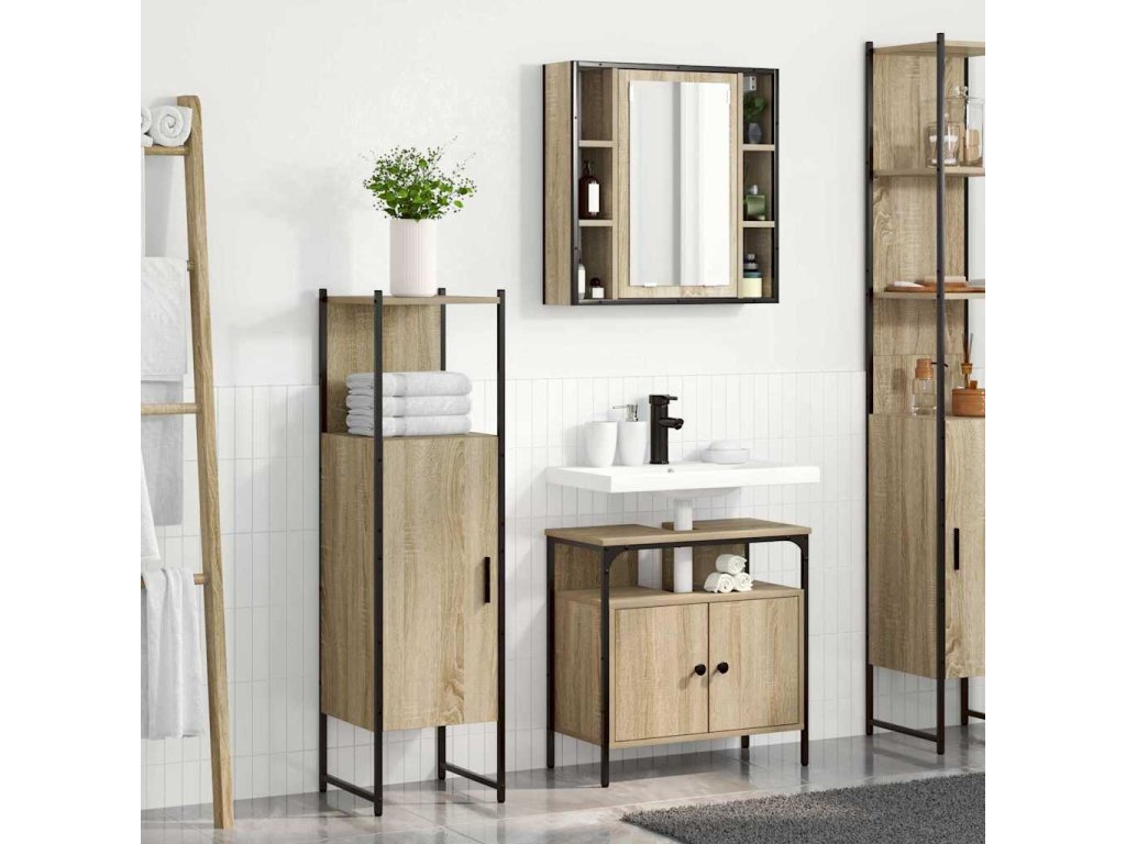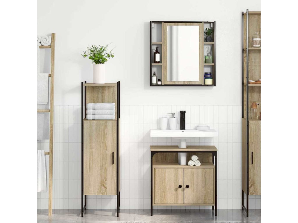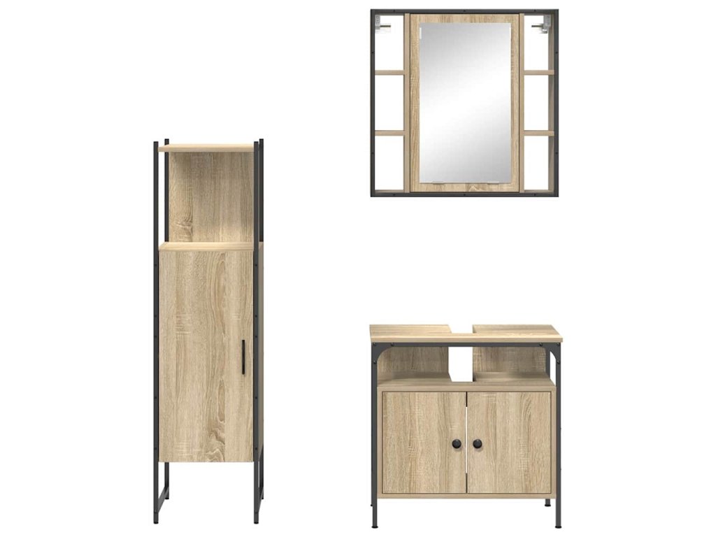 - Součásti zahrnuté: V sadě je zrcadlová skříň, skříňka pod umyvadlo a prostorná koupelnová skříň. Každý díl je udělaný tak, aby byl praktický a útulný s dostatkem místa pro uložení věcí, takže máte koupelnu bez chaosu.