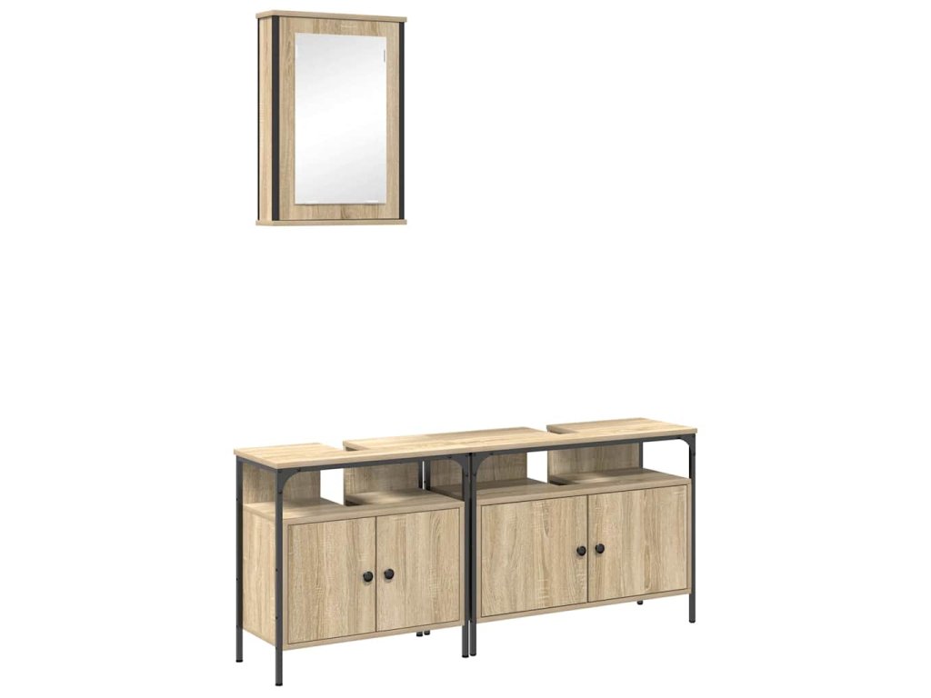- Materiál z inženýrského dřeva: Sestava je vyrobená z kvalitního inženýrského dřeva, což zaručuje odolnost a dlouhou životnost. Tento materiál je skvělý pro udržení vzhledu a odolá opotřebení. Jeho hladký povrch je voděodolný, což se hodí do koupelny.