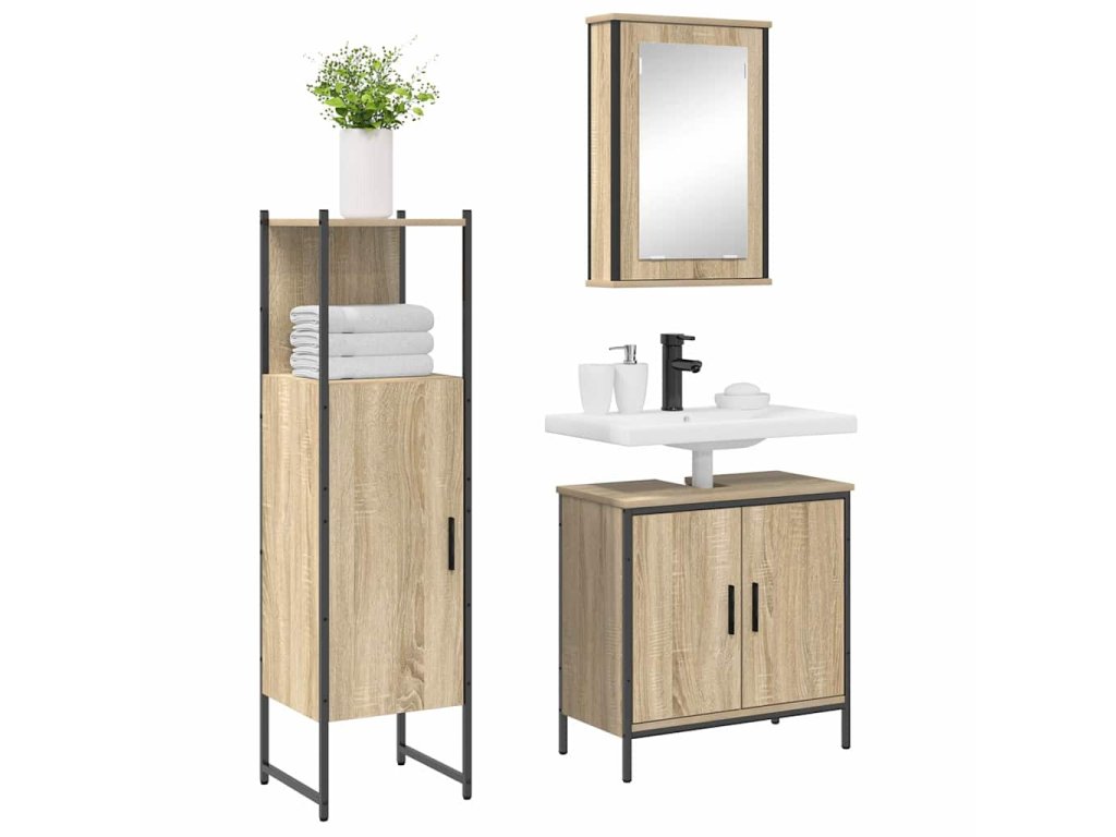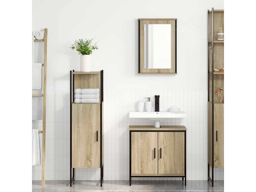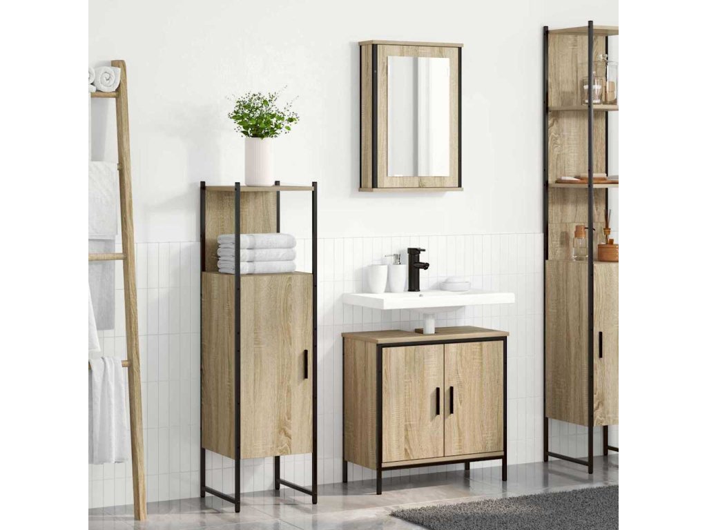 - Vyrobeno z kompozitního dřeva Tato nábytková sada z inženýrského dřeva zajišťuje pevnost a dlouhou životnost, což je ideální do vlhkých prostředí, jako jsou koupelny. Hladký povrch zvyšuje moderní vzhled a odolává každodennímu používání.