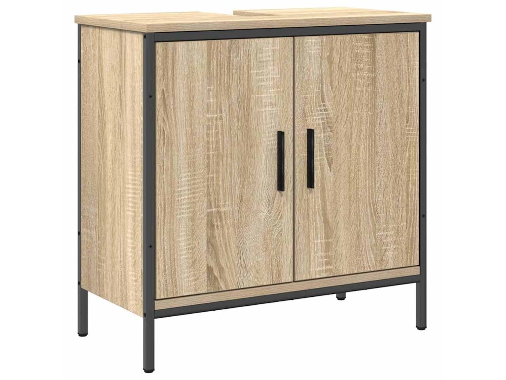 - Materiály: Vyrobeno z kvalitního inženýrského dřeva a pevného ocelového rámu, tato koupelnová sada je stylová a odolná. Dřevěná textura dodává teplo, zatímco ocel zajišťuje stabilitu, takže set zvládne každodenní používání a vlhkost. Kvalitní zpracování posiluje její životnost a vkusně doplní jakoukoli koupelnu.